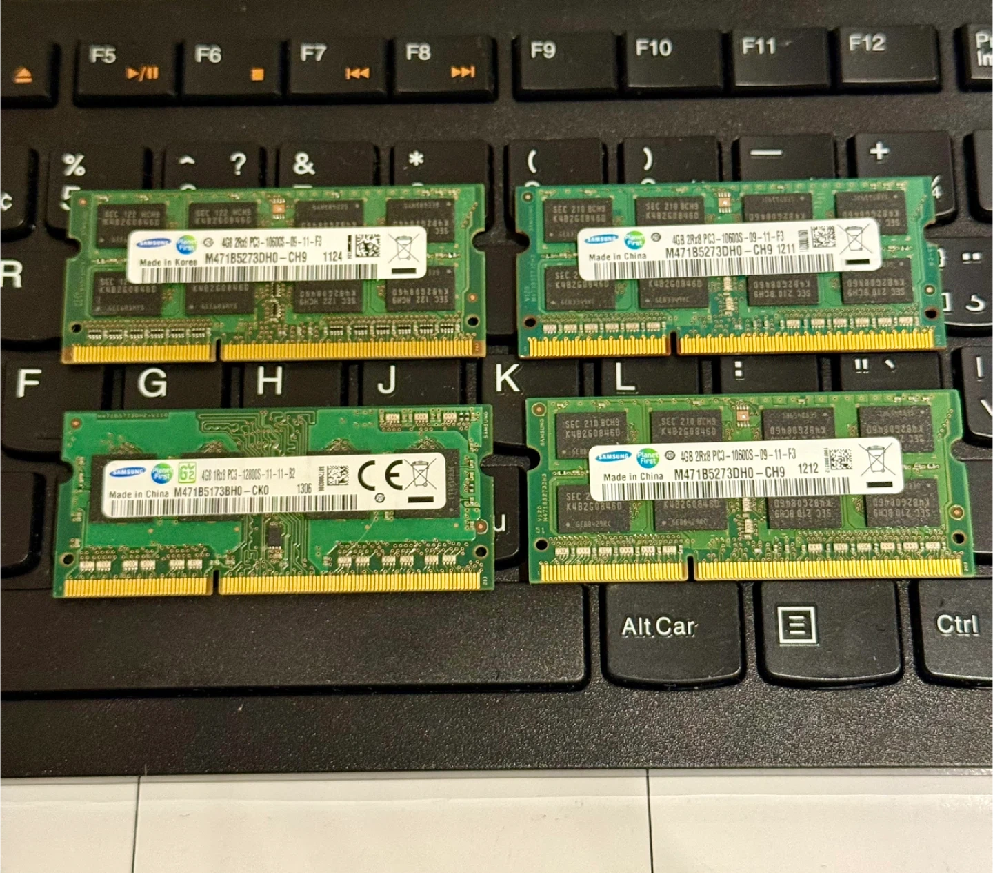 Selling four Samsung 4GB DDR3 SODIMM memory modules. These are PC3-10600S (1333MHz) and PC3-12800S (1600MHz) modules. Great for upgrading laptop memory!