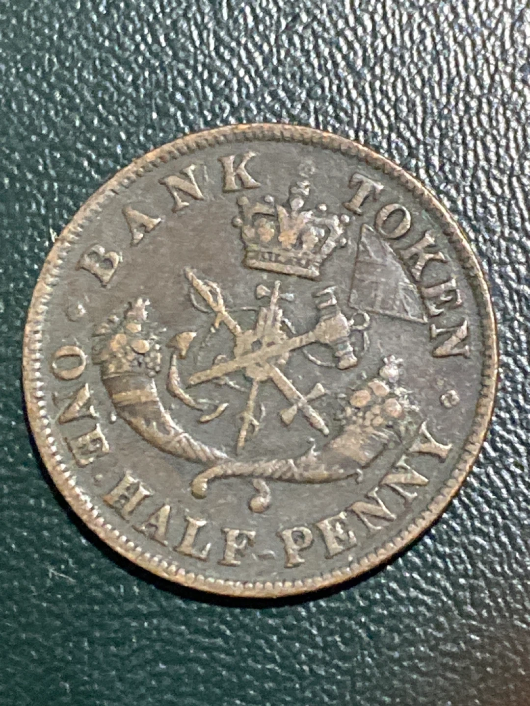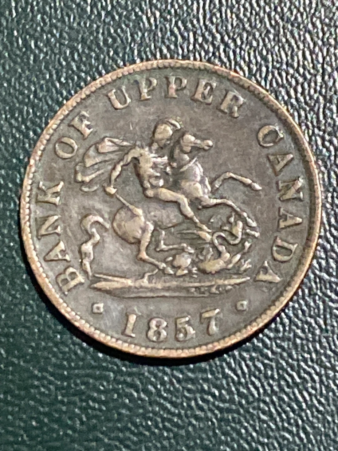 Buy & SellBank Token Half Penny 1857Bank Token Half Penny 1857$60A Bank Token Half Penny coin from Upper Canada, dated 1857. Features a crown and anchor design on one side and a rider on a horse on the other.WHERE TO MEETCheck LocationView MapSELLERverifieddiamondCorso Italia66758 reviews0 chats·1 favorites·6 viewsSEND CHAT TO SELLERHi diamond! I’m interested in your listing.Hi diamond! I’m interested in your listing.Get the Karrot app to chatSign In to chat