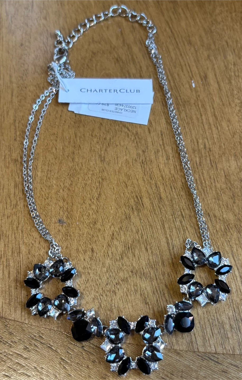 NEW Charter Club Silver-Tone Black & Clear Stone Necklace