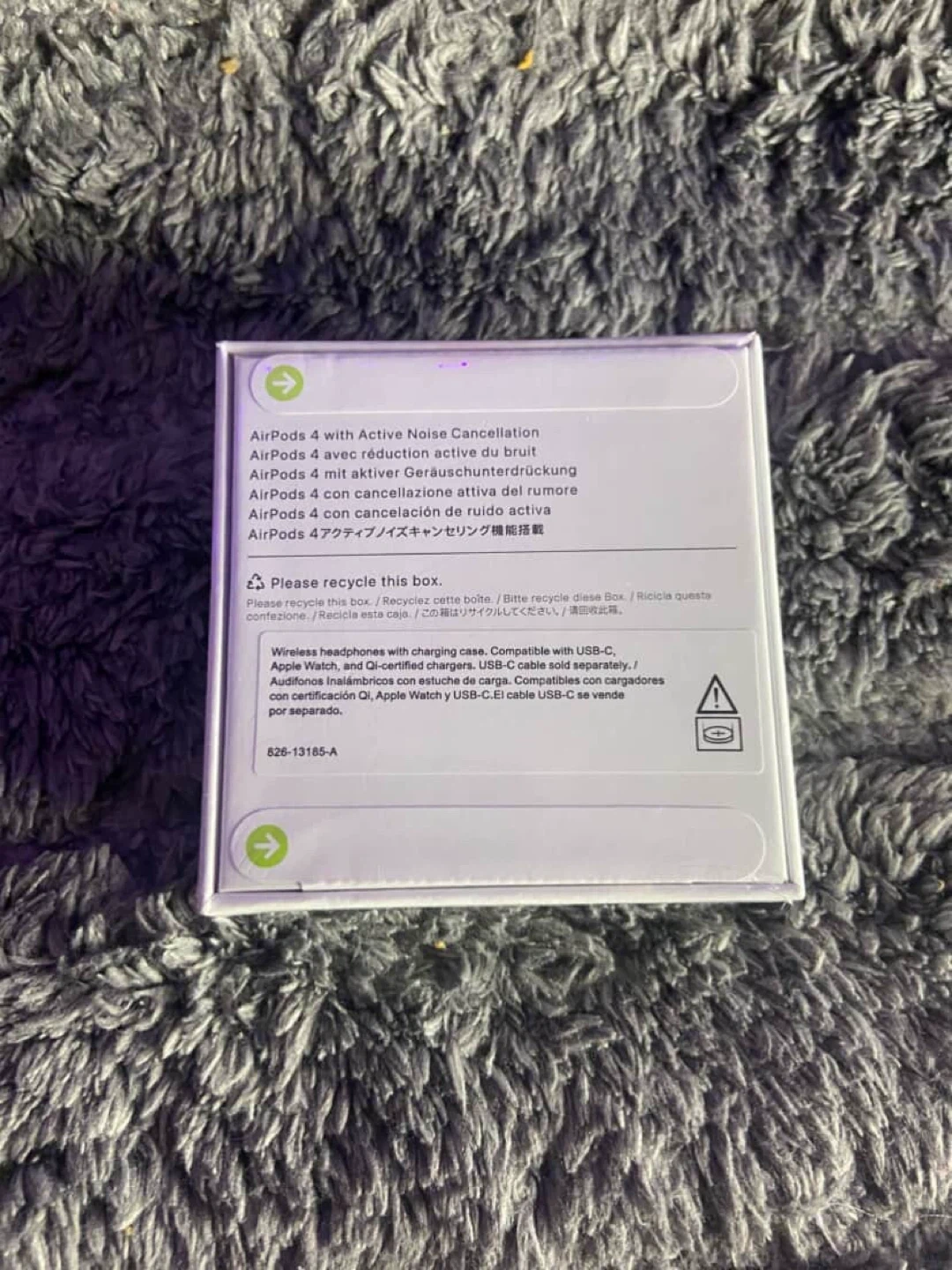 AirPods 4 with Active Noise Cancellation. Wireless headphones with charging case. Compatible with USB-C, Apple Watch, and Qi-certified chargers. USB-C cable sold separately.