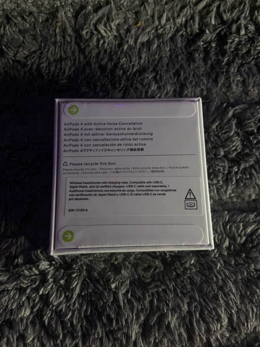 AirPods 4 with Active Noise Cancellation. Wireless headphones with charging case. Compatible with USB-C, Apple Watch, and Qi-certified chargers. USB-C cable sold separately.