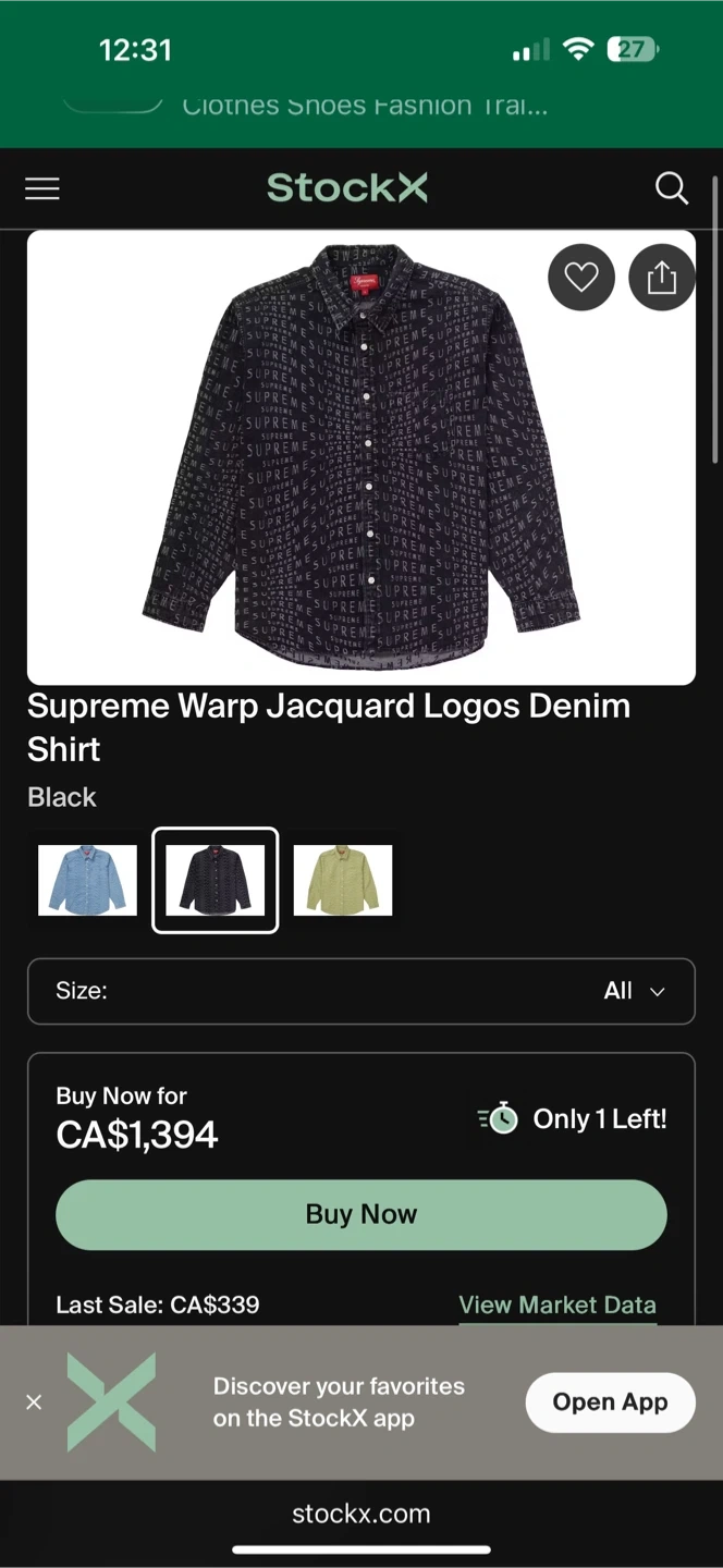 SUPREME SS21 WARP LOGO BUTTON DOWN DENIM SHIRT MEN SIZE MEDIUM