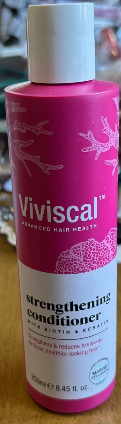 Viviscal Strengthening Conditioner is formulated with hair building Biotin and Keratin. It strengthens and reduces breakage for fuller, healthier-looking hair. 250ml bottle.