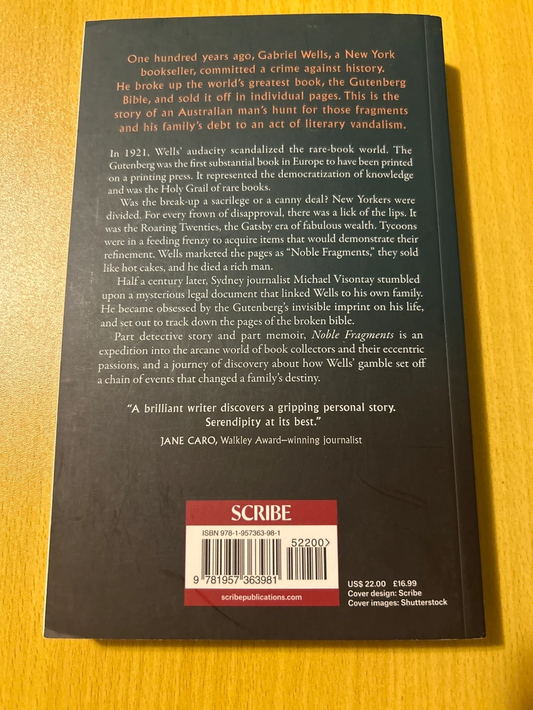 This book tells the gripping story of the antiquarian bookseller who broke up a Gutenberg Bible. It delves into the mystery of rare books and the democratization of knowledge. A gripping personal story awaits!