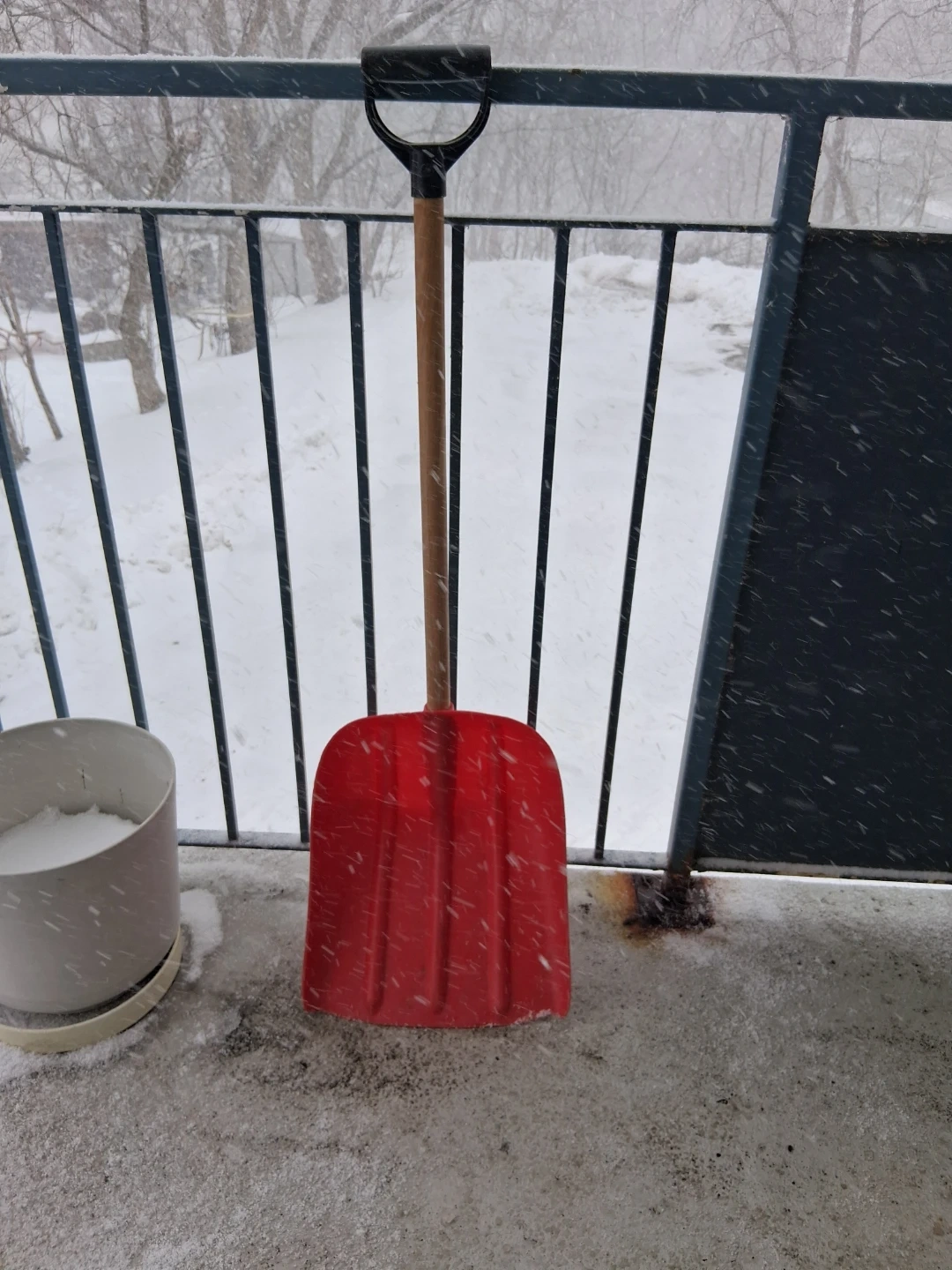 Don't get caught in the next snowfall! Durable, very light red plastic snow shovel for sale. It will likely fit in your trunk. 44" x 13" wide