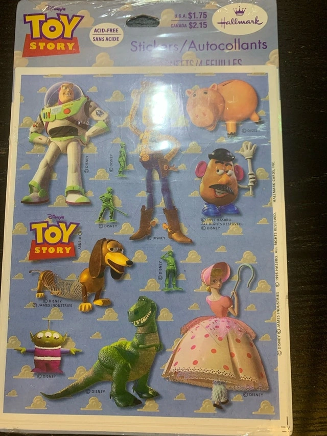 Blast off to fun with these vintage 1995 Disney Toy Story stickers! In new condition, they're ready to bring a touch of 90s nostalgia to your collection. Featuring all your favourite characters like Buzz Lightyear, Woody, and the whole gang. These acid-free stickers are perfect for scrapbooking, collecting, or adding a retro flair to any surface. The sticker sheet is still sealed in the original packaging. I am asking $15. Let me know if you're interested!