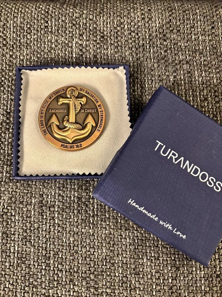Turandoss Gold Plated Anchored in Christ Challenge Coin