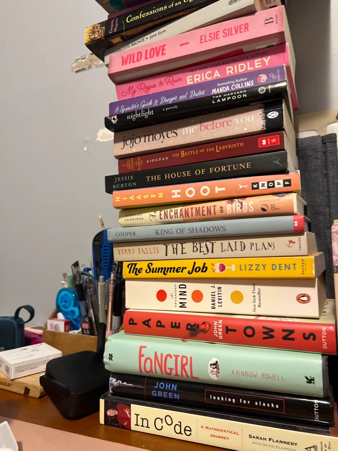 A curated collection of popular fiction novels, including titles by John Green, Jojo Moyes, and Elsie Silver.