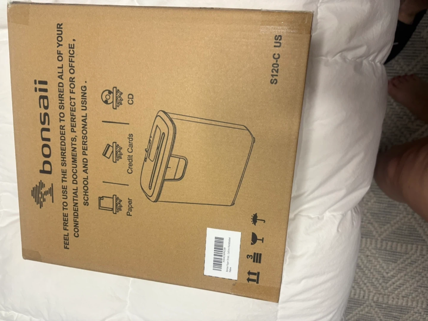 This Bonsaii paper shredder is designed for home use. It handles paper, credit cards, and CDs. Overheat protection is included.