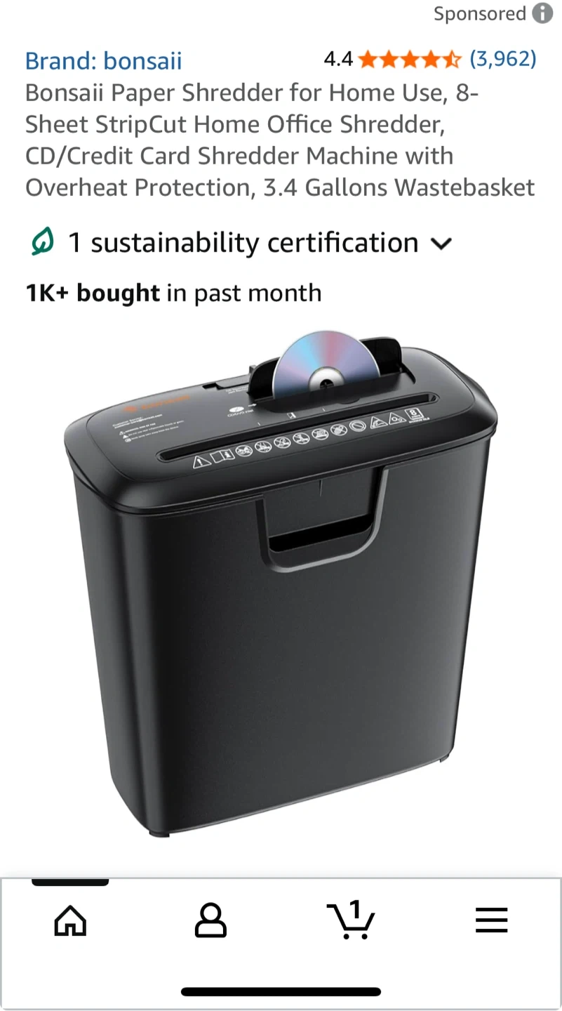This Bonsaii paper shredder is designed for home use. It handles paper, credit cards, and CDs. Overheat protection is included.