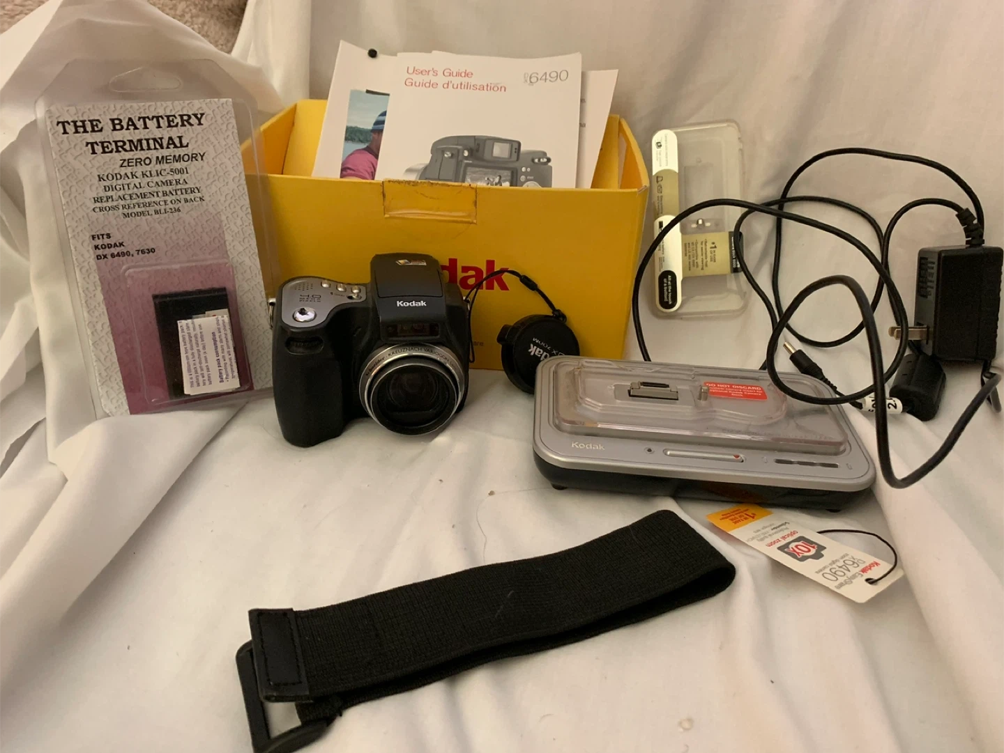 Excellent Condition!! Kodak EasyShare DX6490 digital camera bundle. Includes the camera, charging dock, USB cable, power adapter, and a replacement battery. User's guide and original packaging for the battery are also present. Great for capturing everyday moments!🥕🥕