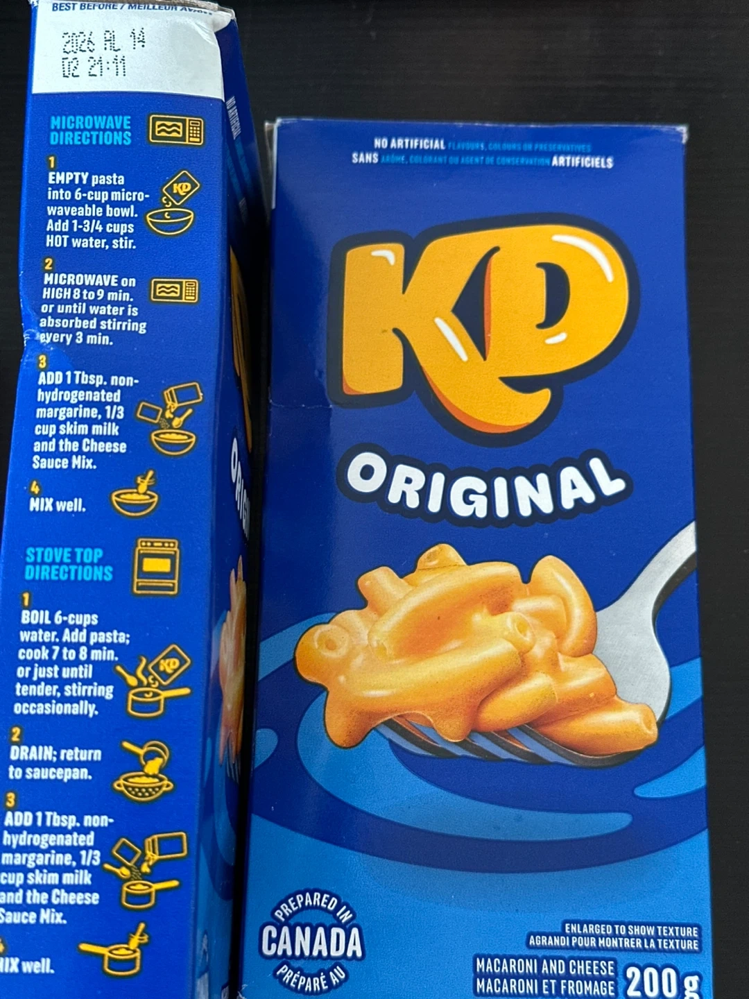 Buy & SellKraft Dinner Original Macaroni and Cheese 200gKraft Dinner Original Macaroni and Cheese 200g$1Original Kraft Dinner macaroni and cheese. Prepared in Canada. It's 200g of pasta and cheese sauce mix.WHERE TO MEETCheck LocationView MapSELLERGladisDowntown8510 reviews0 chats·0 favorites·7 viewsSEND CHAT TO SELLERHi Gladis! I’m interested in your listing.Hi Gladis! I’m interested in your listing.Get the Karrot app to chatSign In to chat