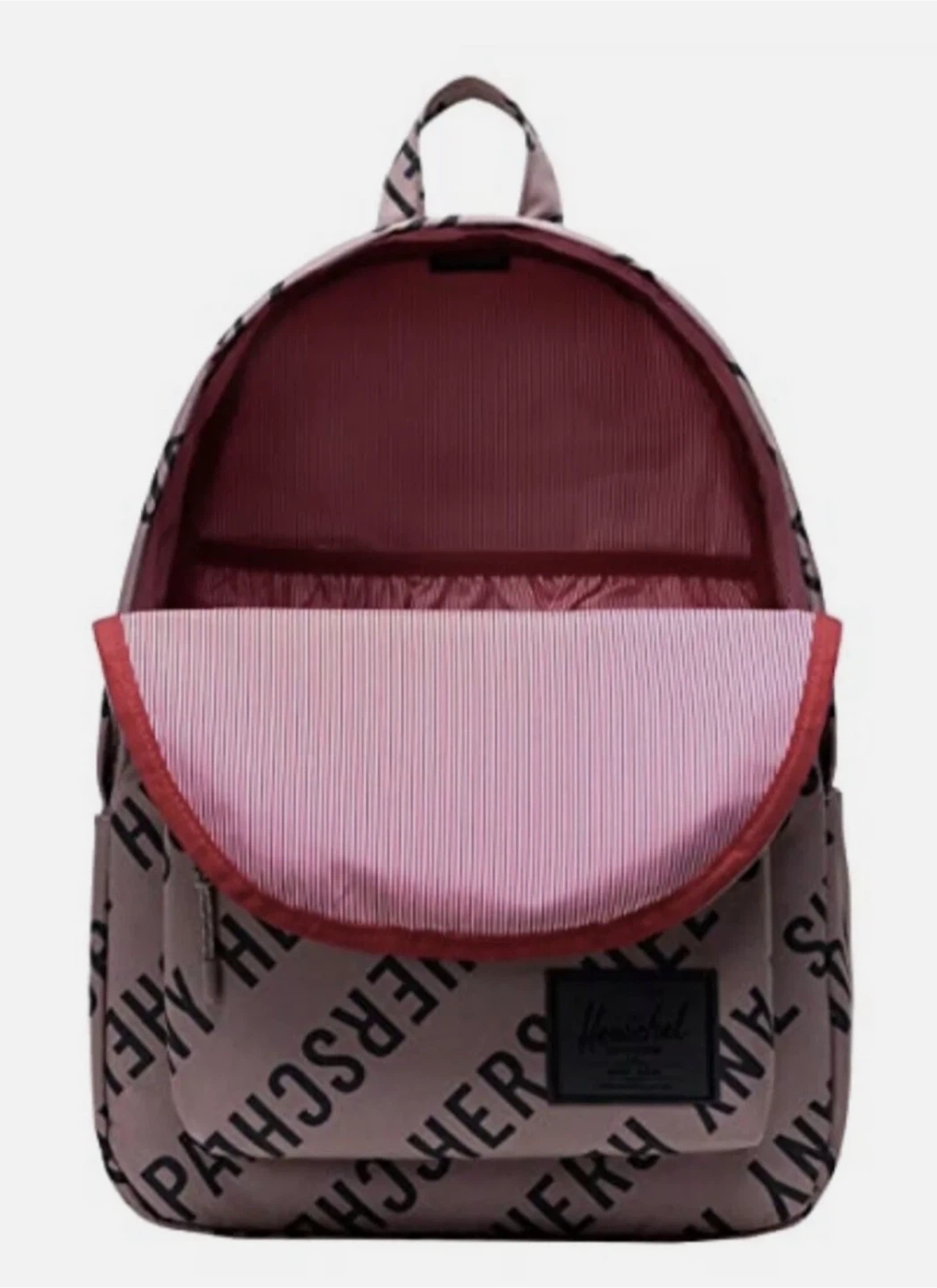 Herschel Supply Co. backpack with all-over logo print. It's a versatile bag for everyday use. Zippered main compartment and front pocket. Herschel Classic XL 30l Backpack Roll Call Ash Rose One Size