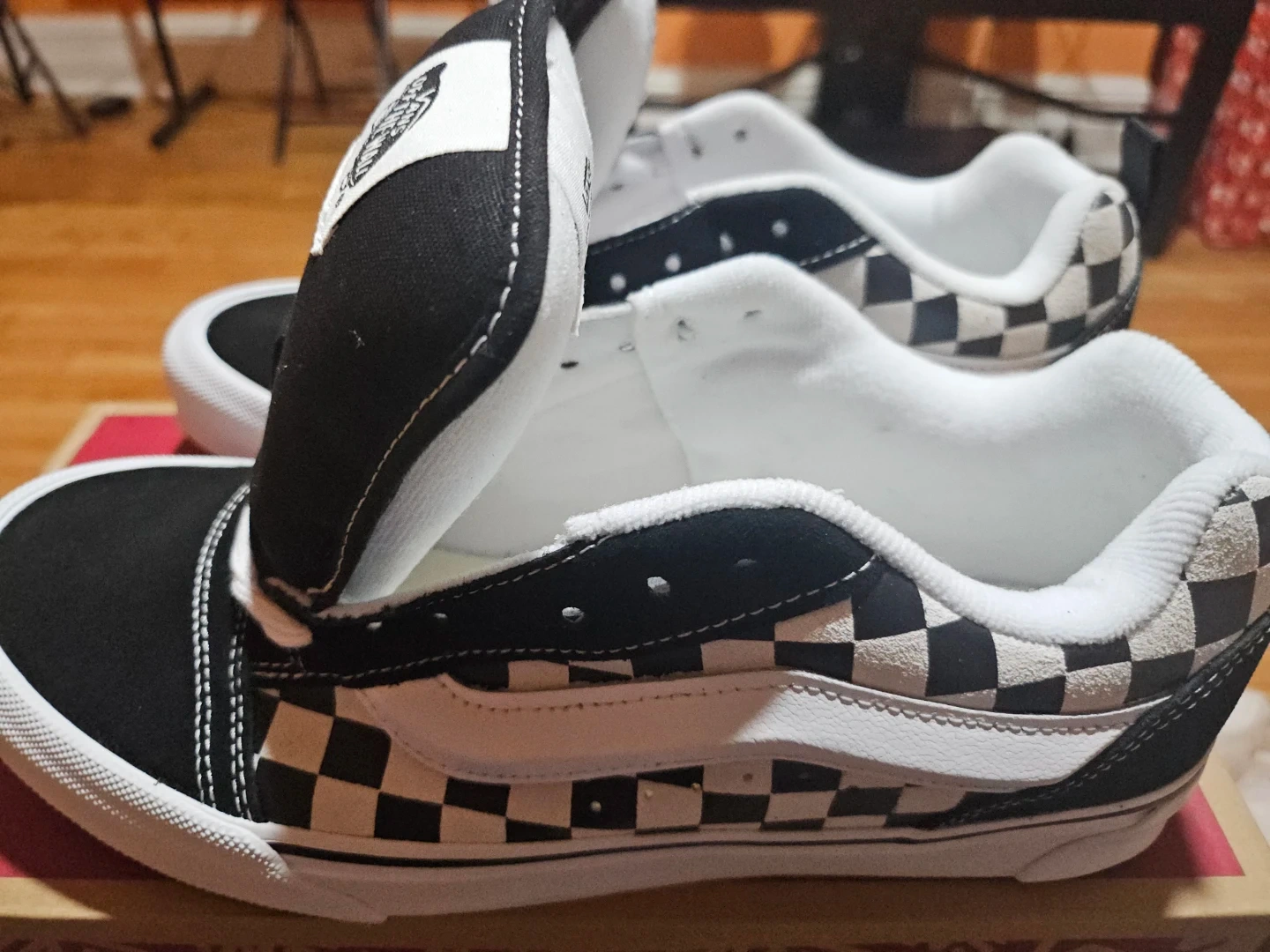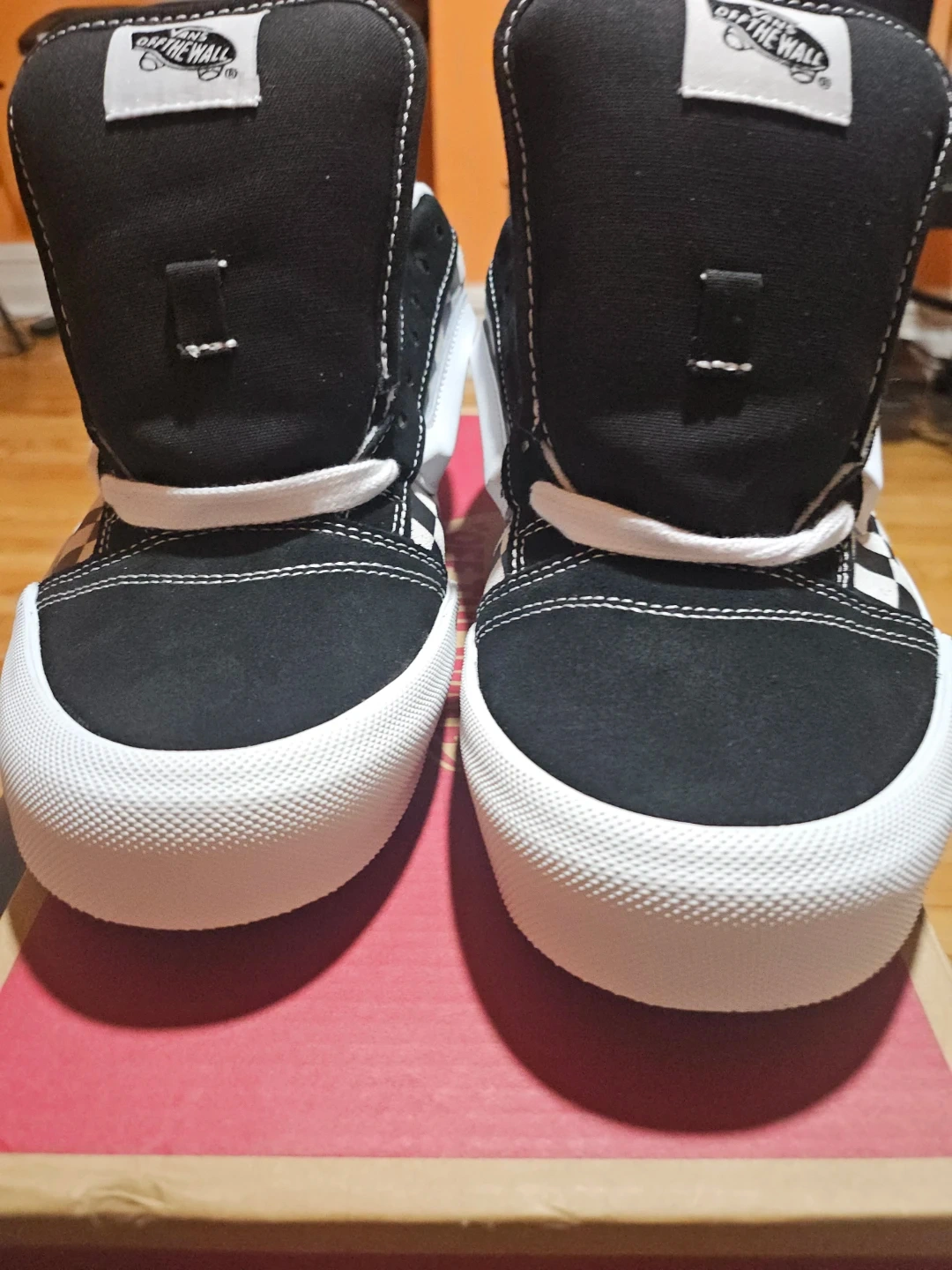 These Vans SK8-Hi Pro shoes feature a classic black and white checkerboard design. They have a durable canvas and suede upper with signature Vans waffle sole. This iconic skate shoe offers comfort and style!