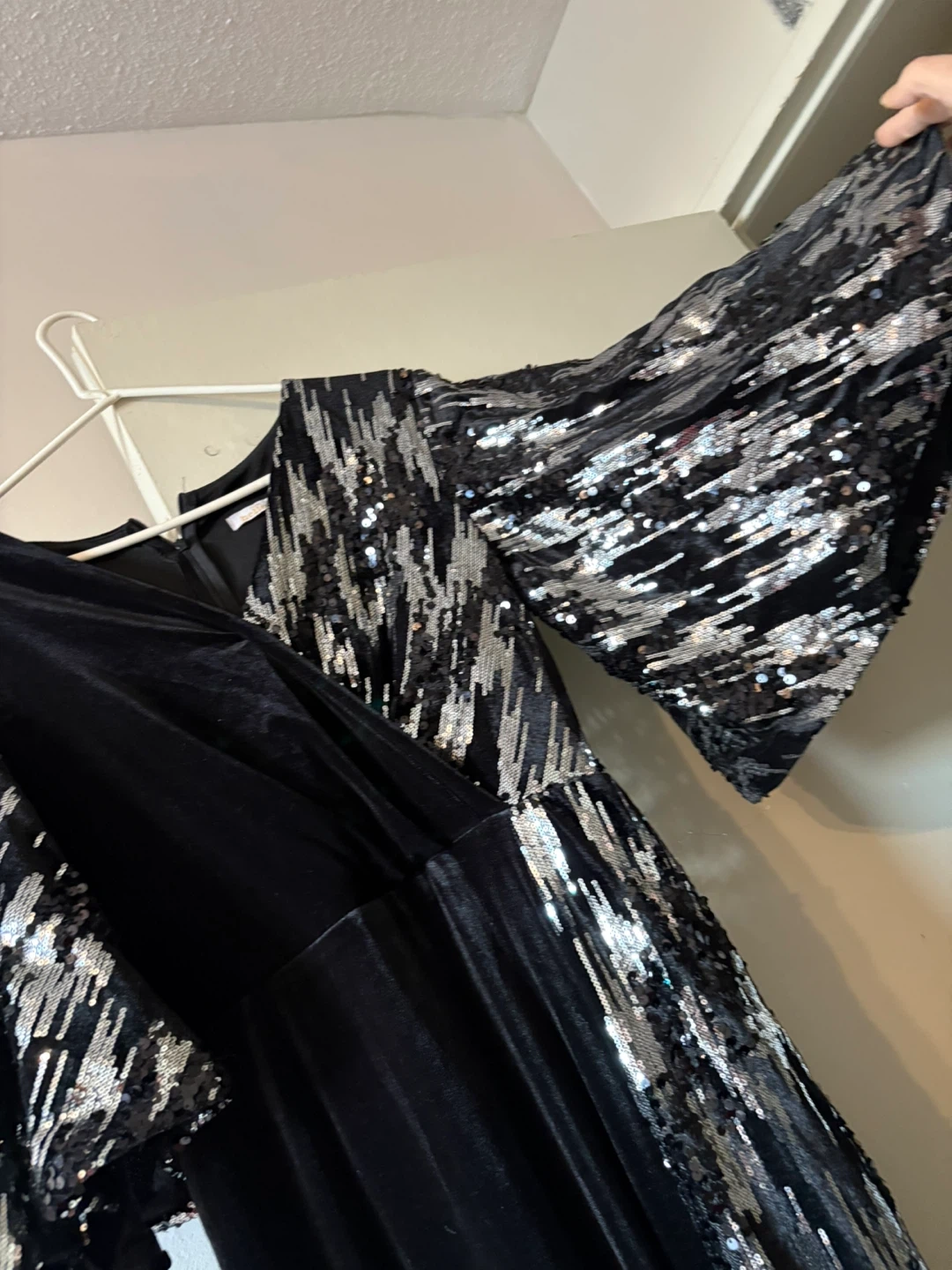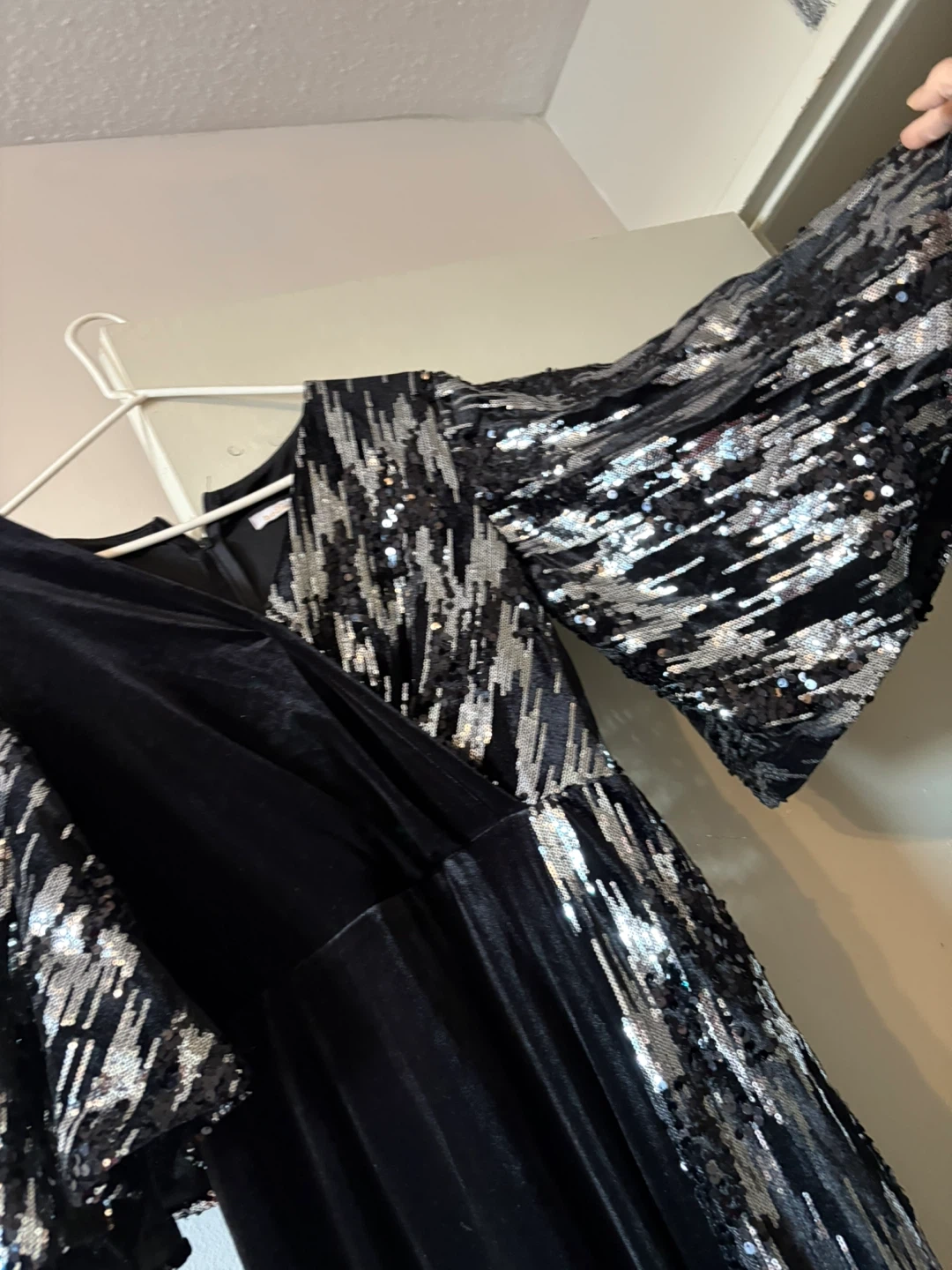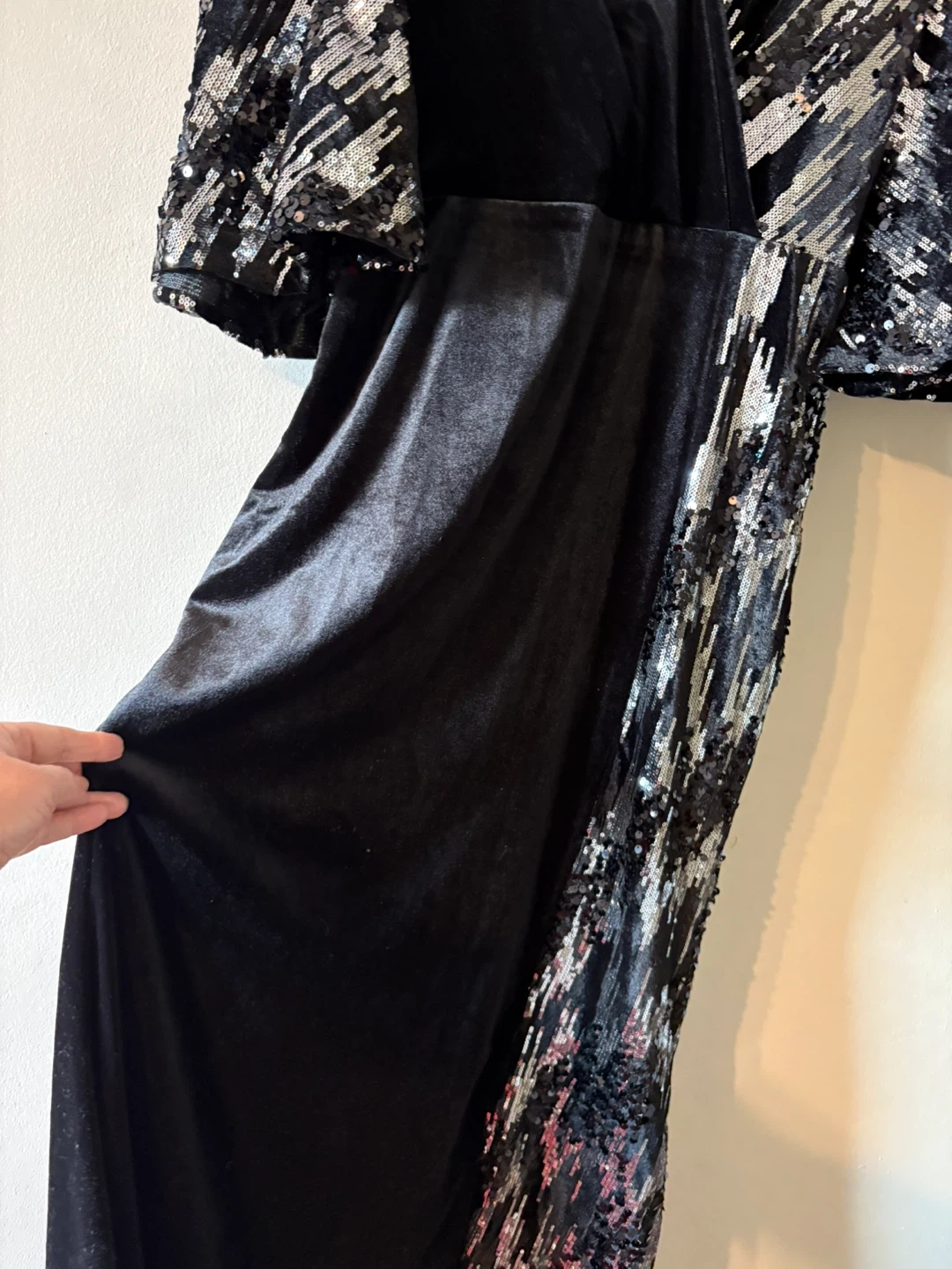 Black Velvet Dress with Sequin Sleeves