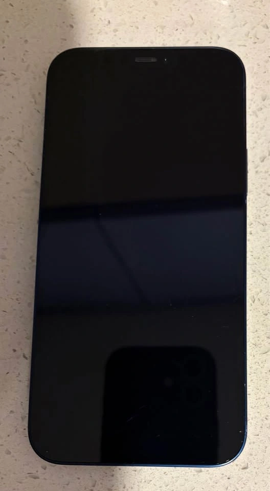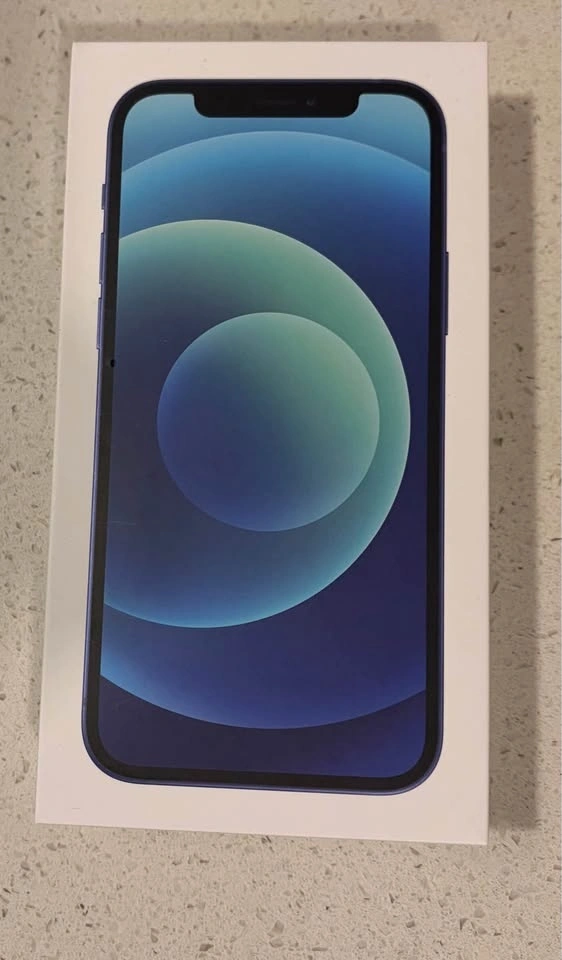 Blue iPhone 12 with 128 GB storage and original box for sale. In great, 8/10 condition with no cracks and everything working. Unlocked and signed out of iCloud. Never repaired. Battery health is 76%. Pickup in Whitby cash only.