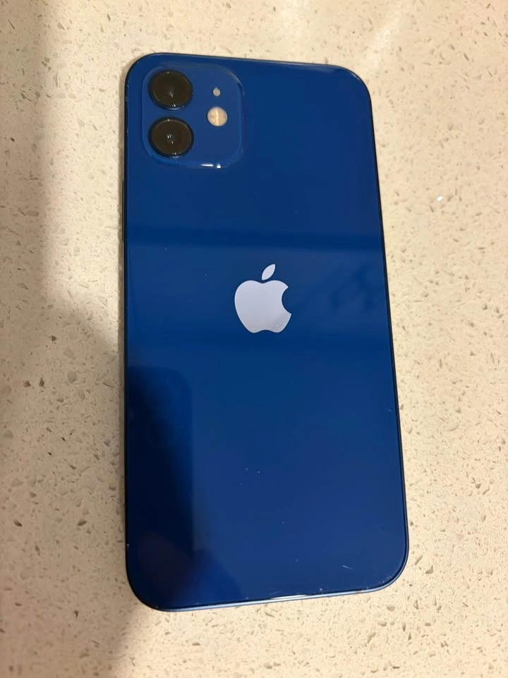 Blue iPhone 12 with 128 GB storage and original box for sale. In great, 8/10 condition with no cracks and everything working. Unlocked and signed out of iCloud. Never repaired. Battery health is 76%. Pickup in Whitby cash only.