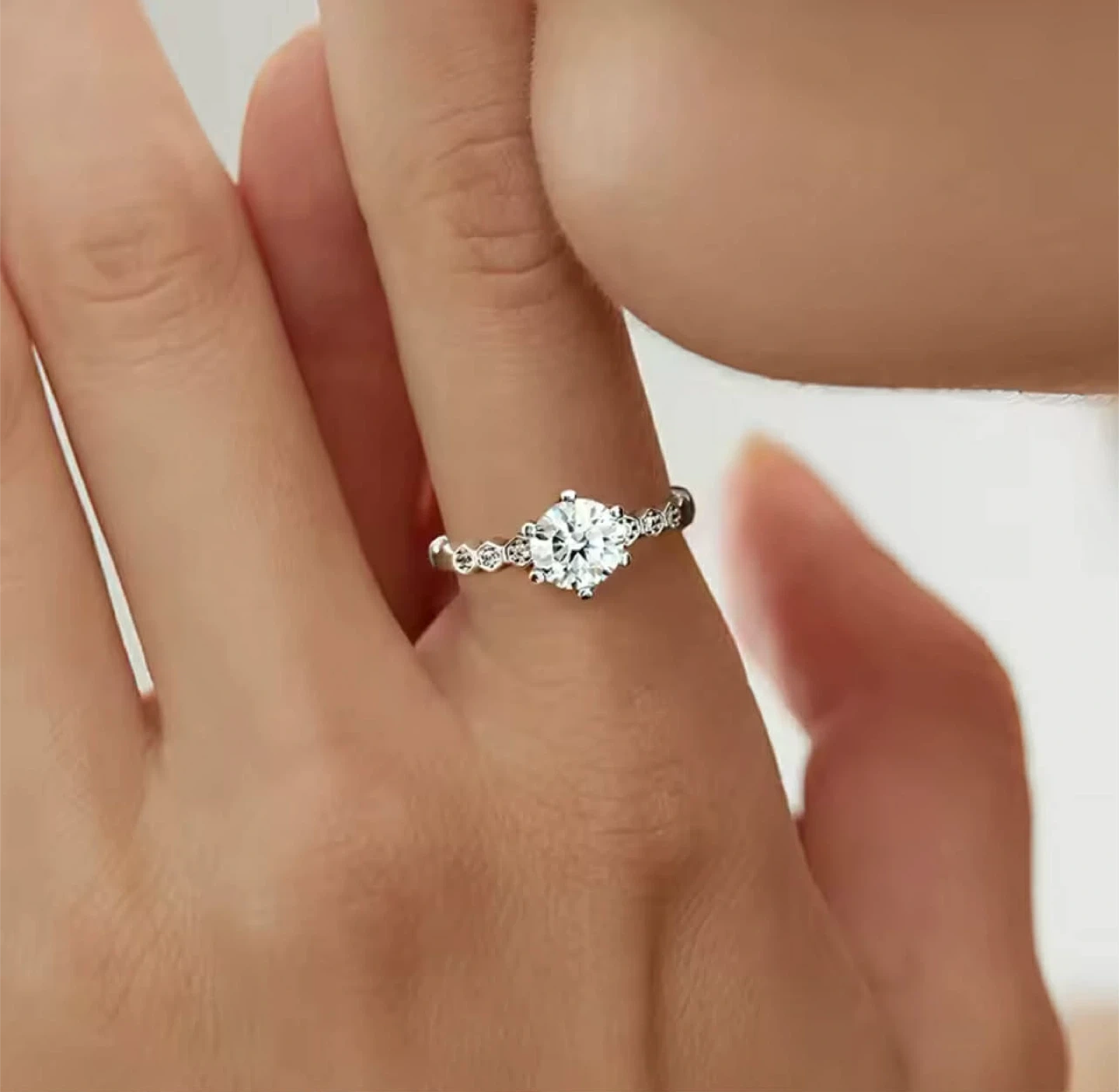 1 Carat Sterling Silver Moissanite Ring with GRA Certificate