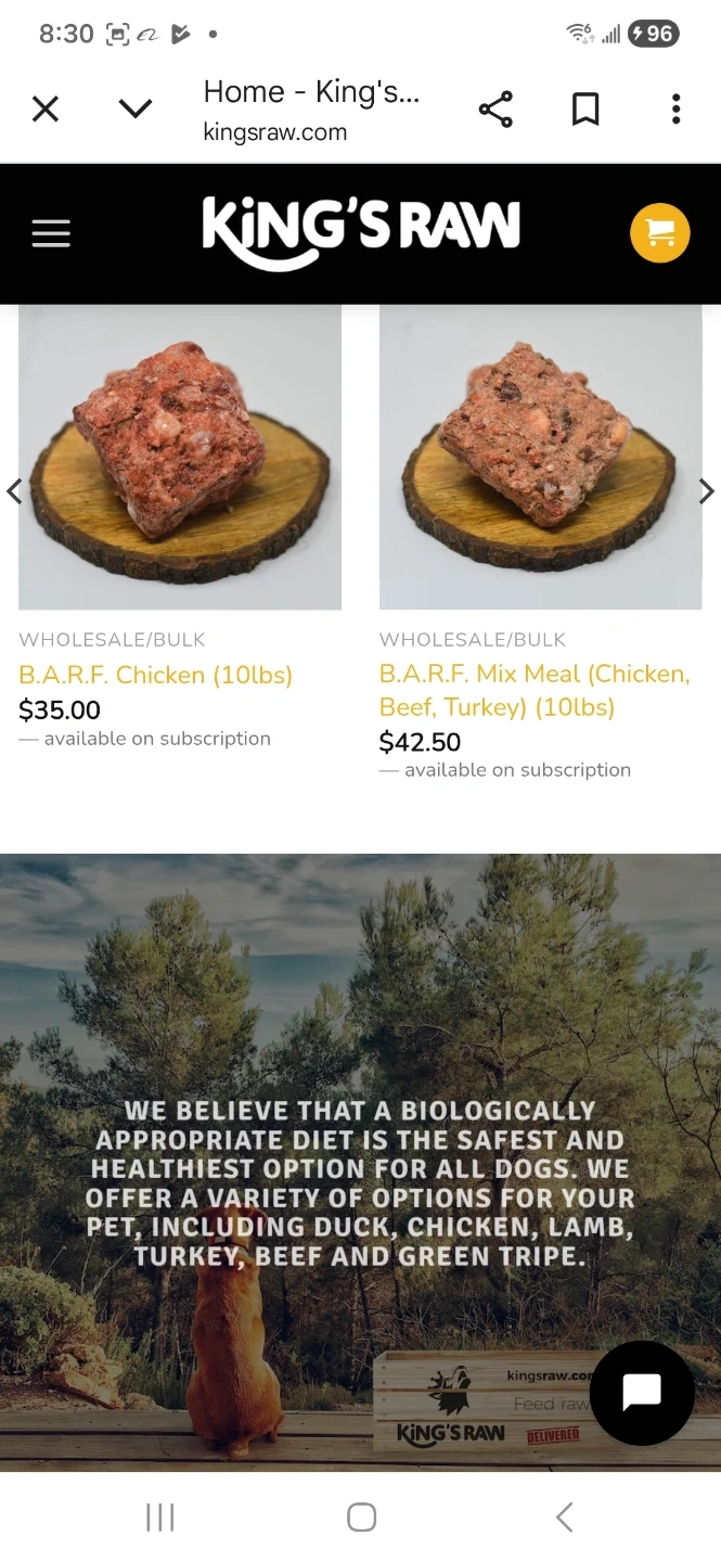King's Raw offers a balanced diet derived from quality ingredients. Products are locally sourced and free of hormones, additives, and preservatives. This B.A.R.F. chicken is handmade in Toronto. It's a biologically appropriate diet for dogs.contac us @ info@kingsraw.com