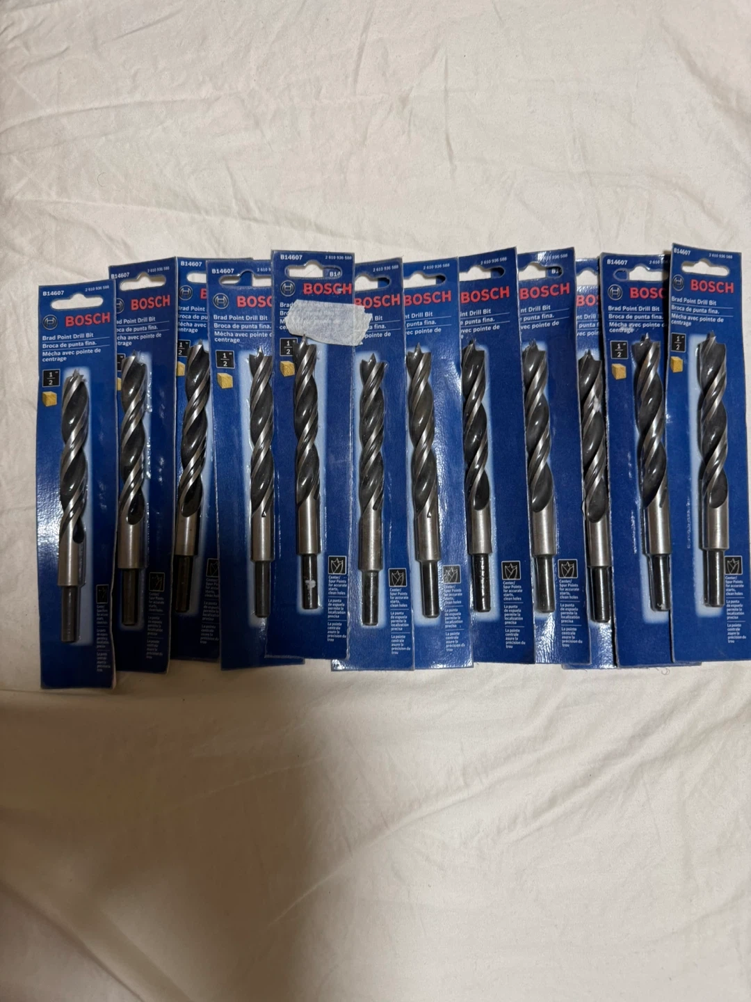 Each 10 A set of Bosch Brad Point drill bits. These are designed for precise woodworking applications. They feature a brad point tip for accurate starting and clean holes.