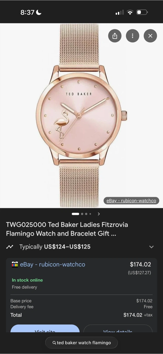This Ted Baker London watch features a rose gold-tone case. It comes with a mesh rose gold-tone strap and a second pink leather strap. The watch is presented in its original box with user information. Would make as a great valentines present!
