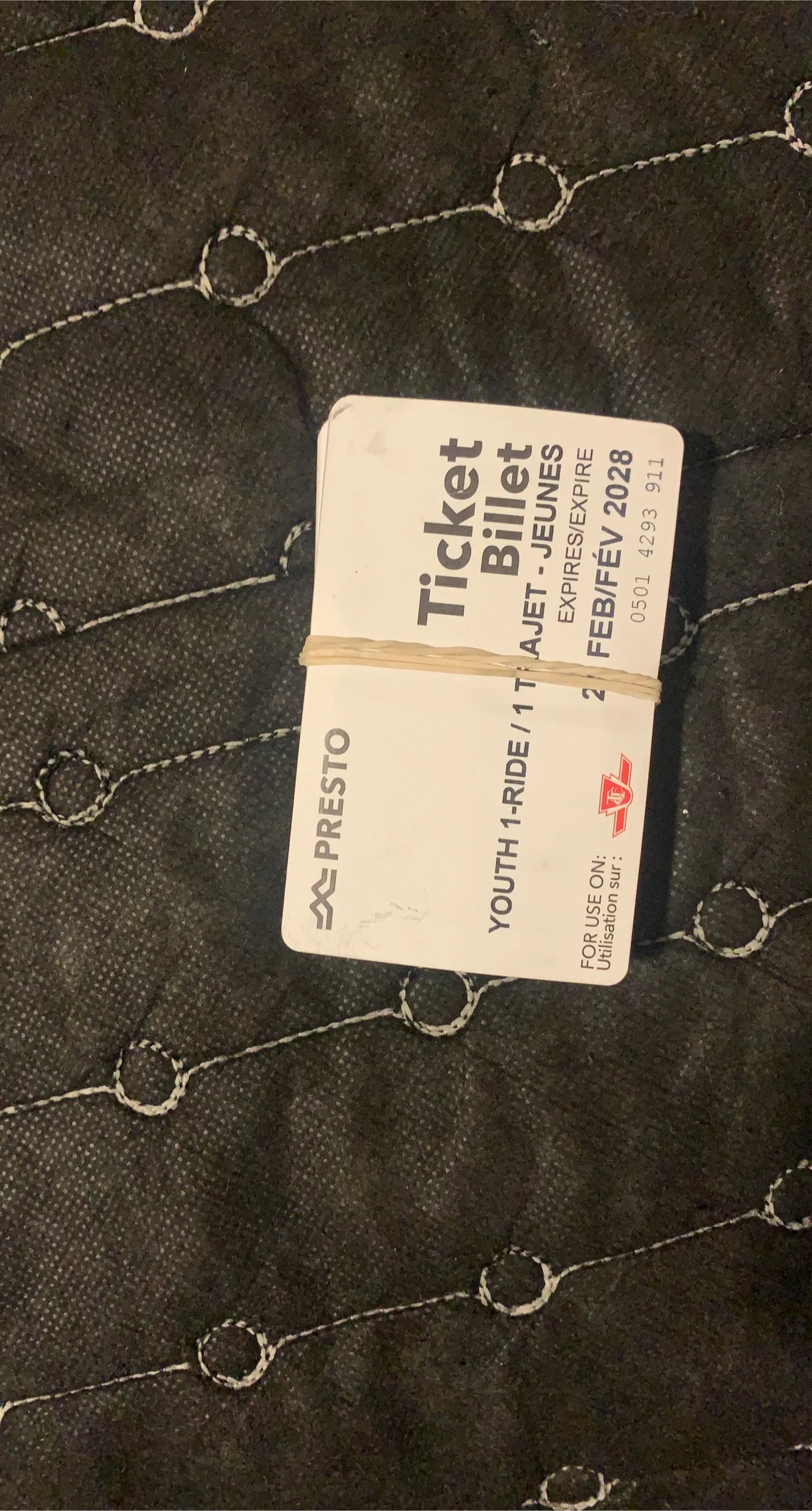 Buy & SellPresto Youth 1-Ride Tickets (2028 Expiry)Presto Youth 1-Ride Tickets (2028 Expiry)$5Presto youth 1-ride tickets available. Expiry date is February 2028. These are for use on the specified transit system.WHERE TO MEETCheck LocationView MapSELLERTADownsview262 reviews2 chats·0 favorites·62 viewsSEND CHAT TO SELLERHi TA! I’m interested in your listing.Hi TA! I’m interested in your listing.Get the Karrot app to chatSign In to chat