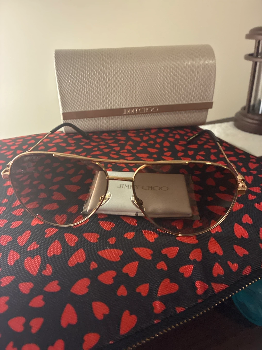 Print. They are made in Italy and come with a branded cleaning cloth, extra rhinestones and a snake skin leather case. The Lenses are tinted and they have never been worn, so very beautiful!