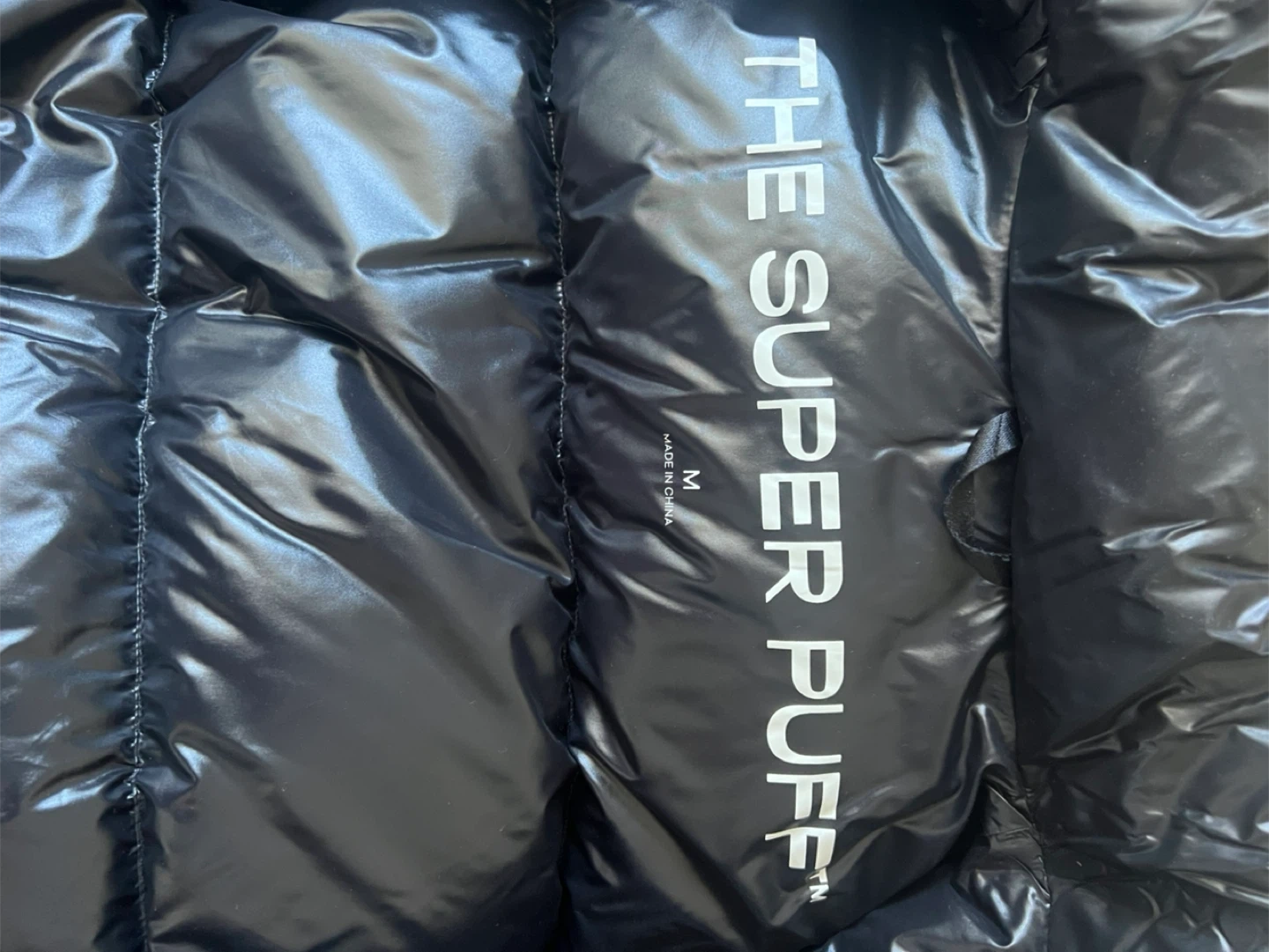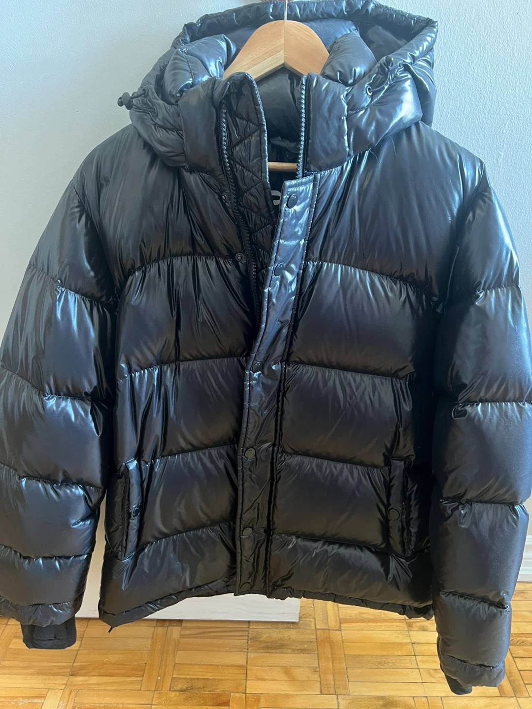 This is an Aritzia Super Puff jacket in black hi-gloss size medium