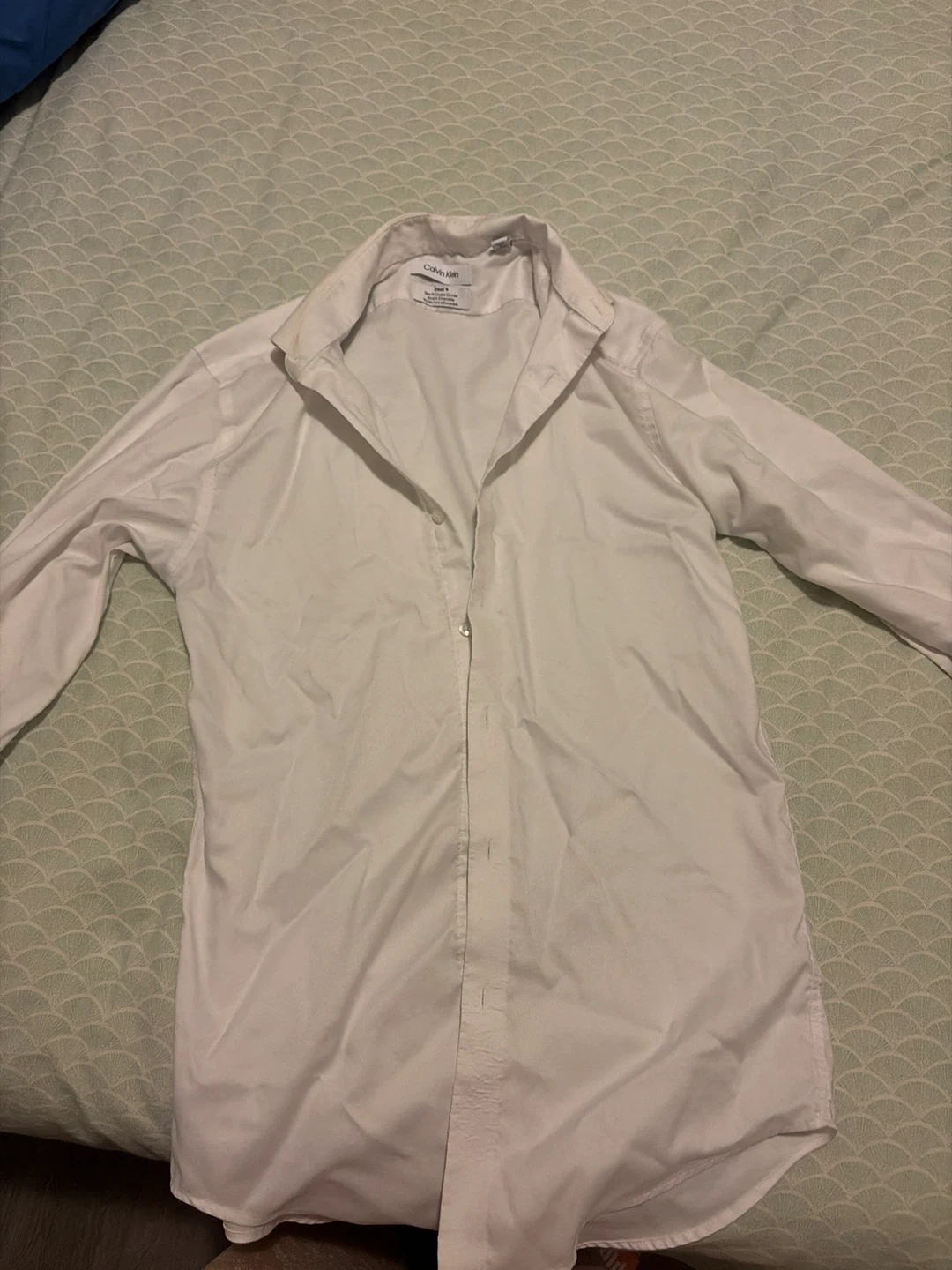 Calvin Klein Steel dress shirt. Slim fit style with stretch fabric. It's wrinkle-free and wrinkle-resistant. Comes in a size S/P.