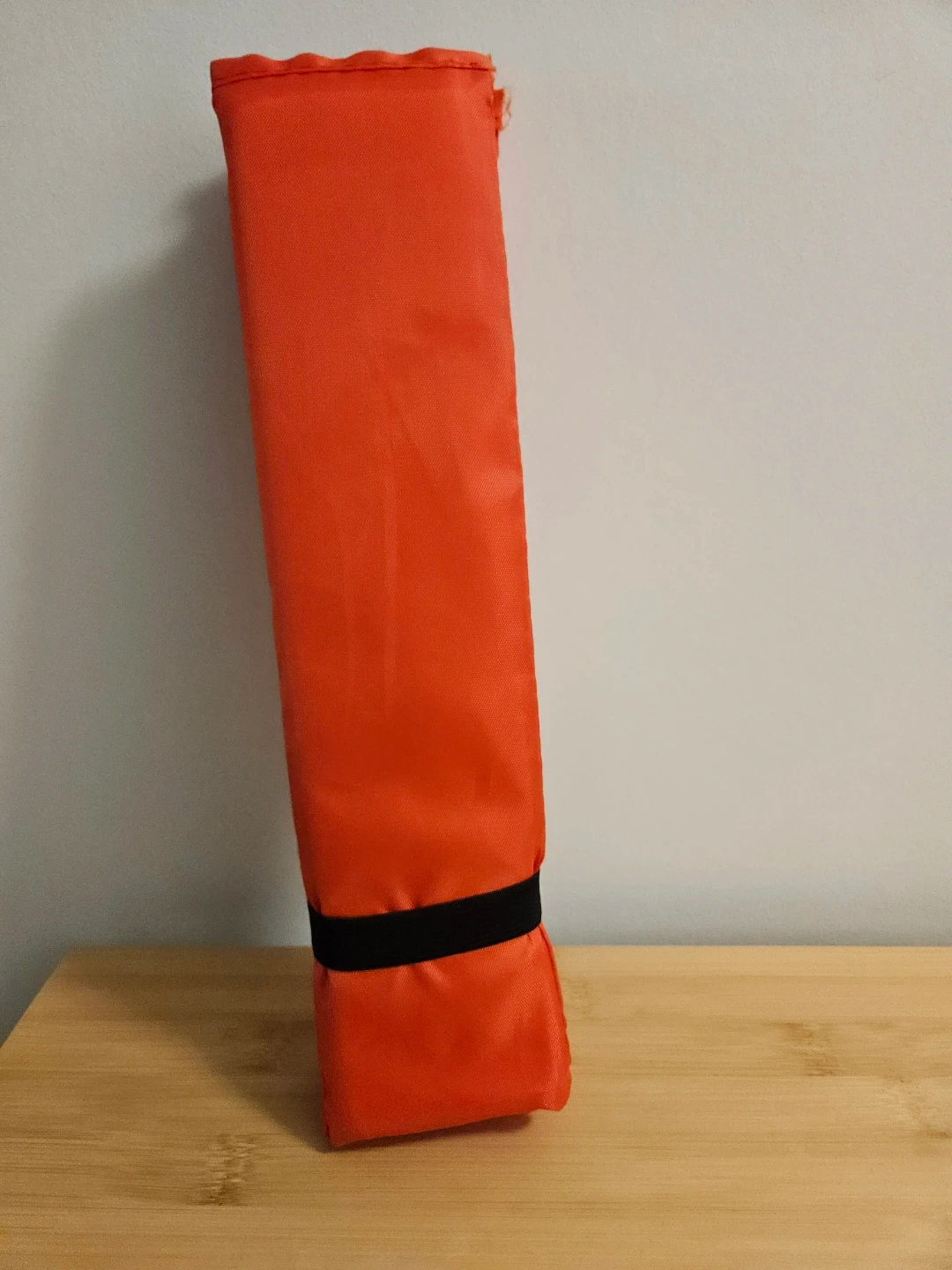 This is a folding seat pad from Canadian Tire. It's red and made of nylon. It folds up and comes with a drawstring bag for easy carrying. It's great for outdoor events or camping trips!