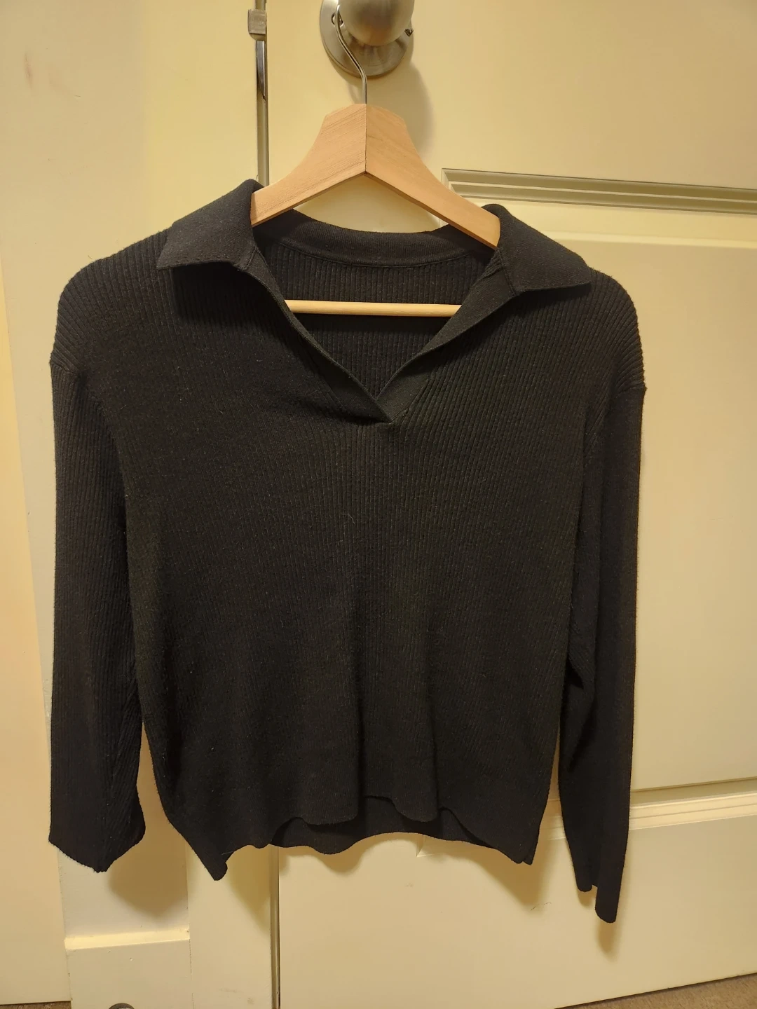Buy & SellUNIQLO Black Ribbed Collared Sweater Size SUNIQLO Black Ribbed Collared Sweater Size S$20Black ribbed long-sleeve sweater from UNIQLO, size S. Only worn a couple times! Pickup @ UBC :) ConditionLike newSizeSWHERE TO MEETUBCView MapSELLERchloeUBC342 reviews0 chats·1 favorites·10 viewsSEND CHAT TO SELLERHi chloe! I’m interested in your listing.Hi chloe! I’m interested in your listing.Get the Karrot app to chatSign In to chat