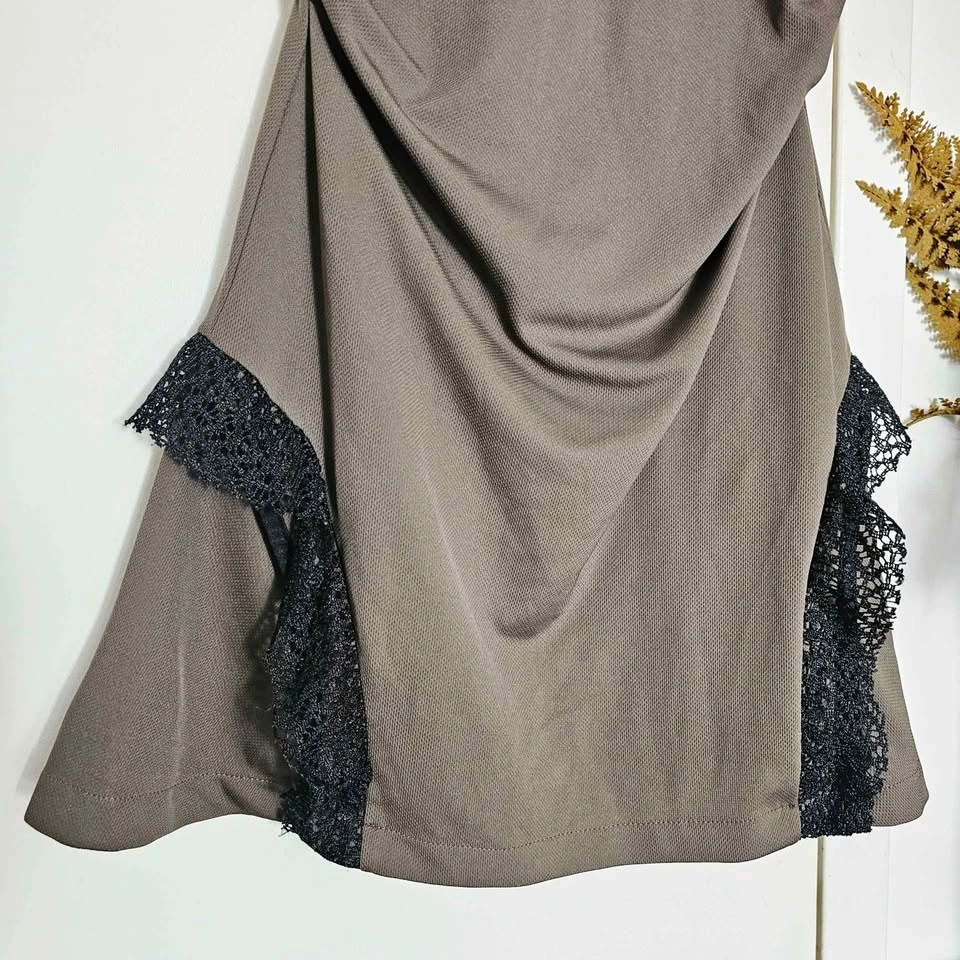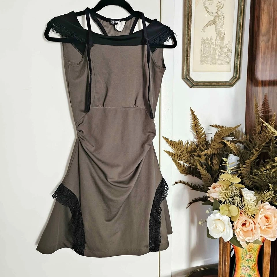 Plastik Wrap Goth Mini Dress XS Olive Green Black Lace