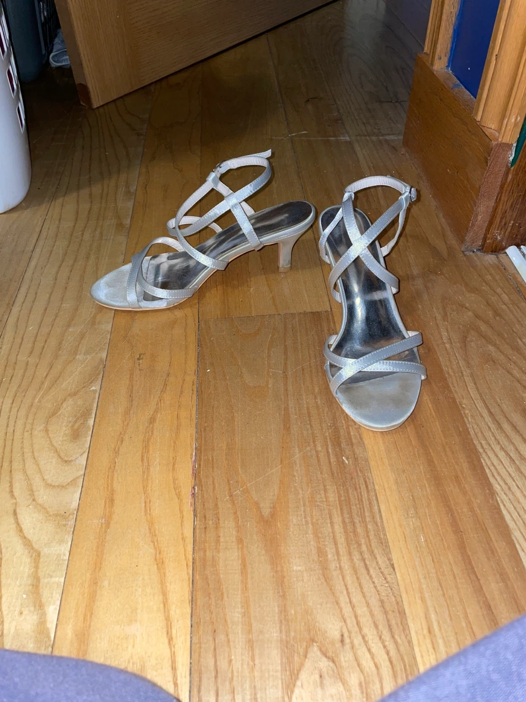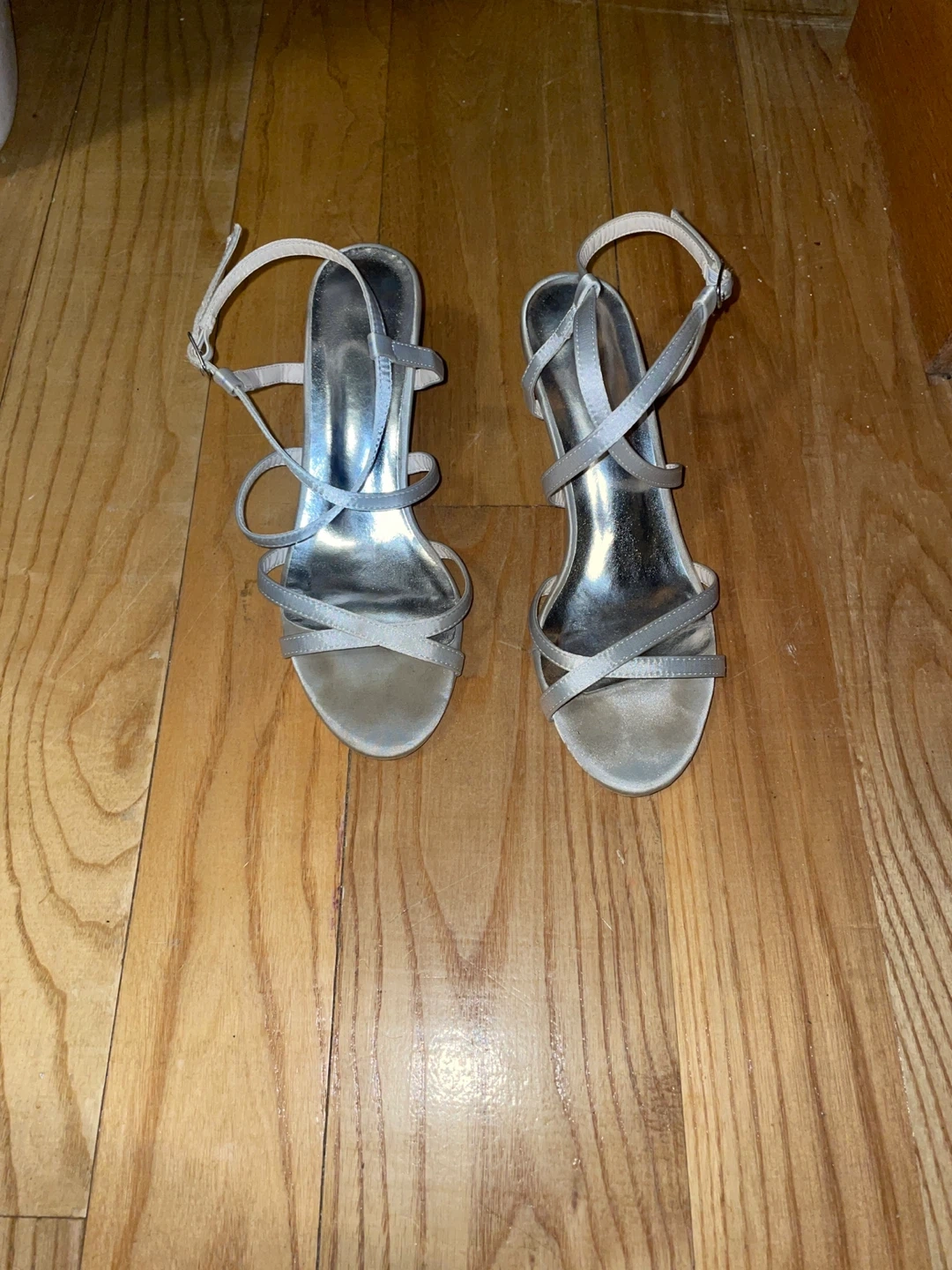 These silver strappy heels are perfect for a night out or a special occasion! They feature a comfortable low heel and an adjustable ankle strap for a secure fit. Dress 'em up or down!