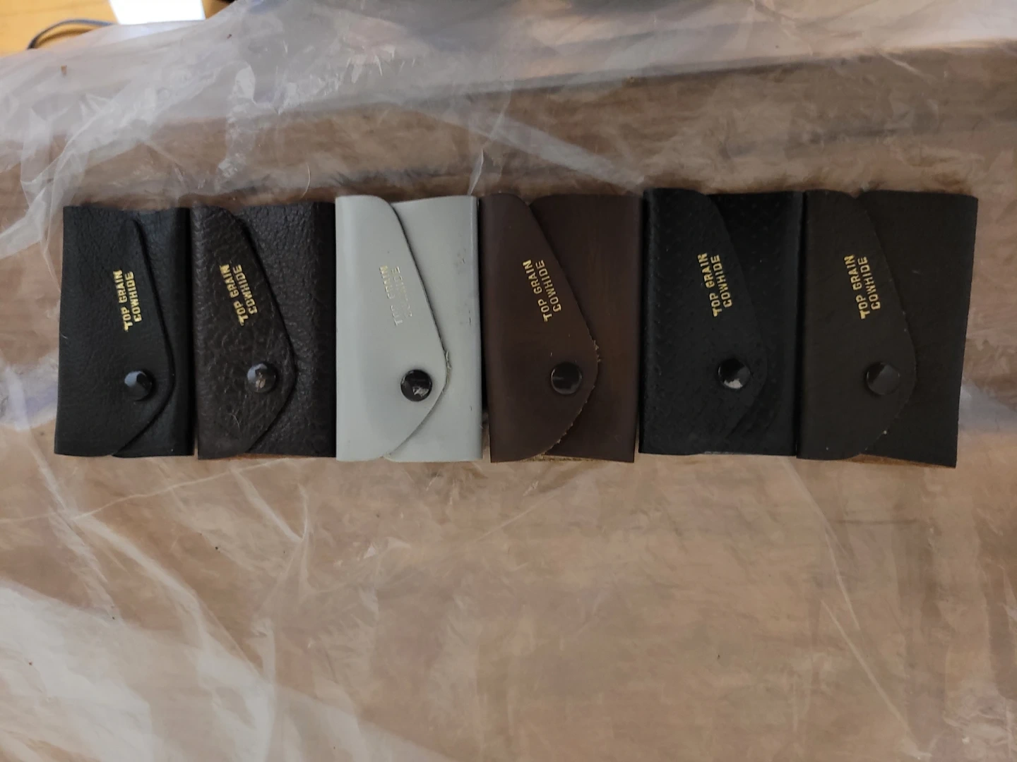 For sell is This set of six top grain cowhide key holders. They're made of genuine leather. They offer a classic way to keep your keys organized.