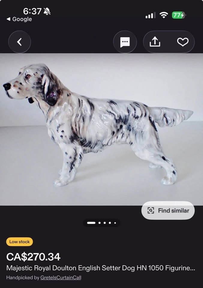 Perfect condition Royal Doulton English Setter Dog figurine. Made in England. Check my marketplace profile for tons of vintage and antique items.