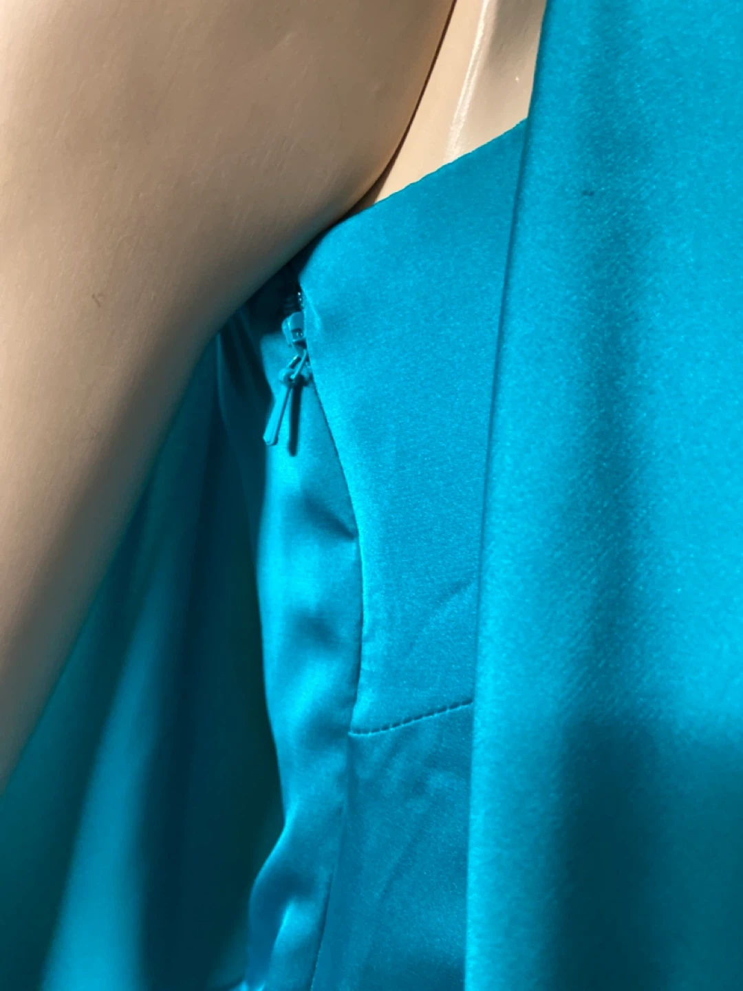NEVER WORN, NWT with defects: small area of seam is opening under the arm on one side, and a sequin has fallen off the shoulder strap, but is attached to the tag ready for repair