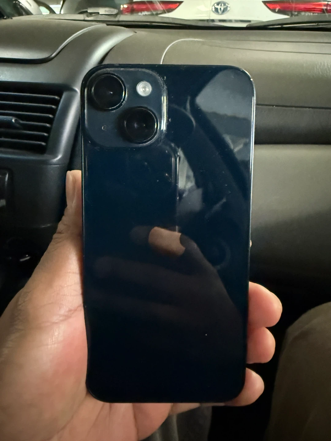 This is an Apple iPhone 14 in Midnight. It's a compact smartphone with a stunning display and powerful performance. Features include a dual-camera system and a Ceramic Shield front cover.