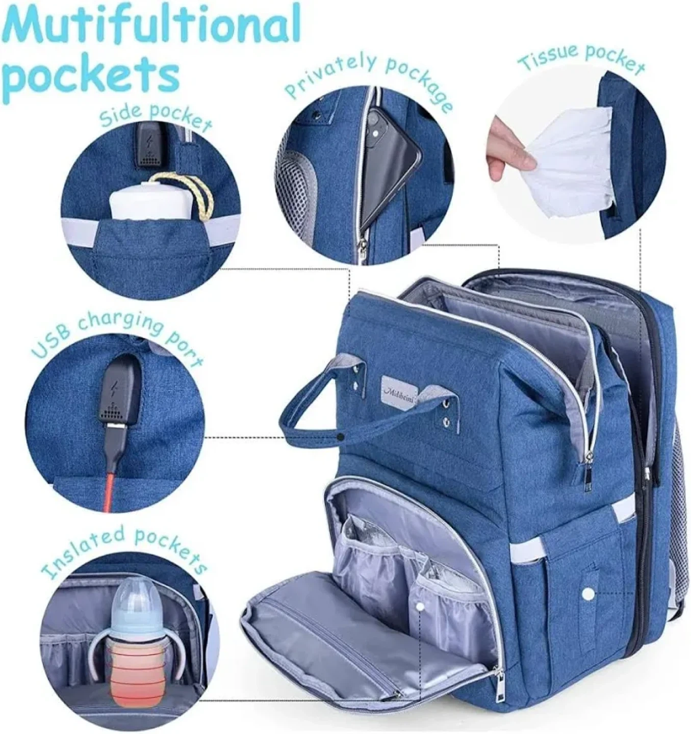 Midibeini 6-in-1 Diaper Bag Backpack - Black