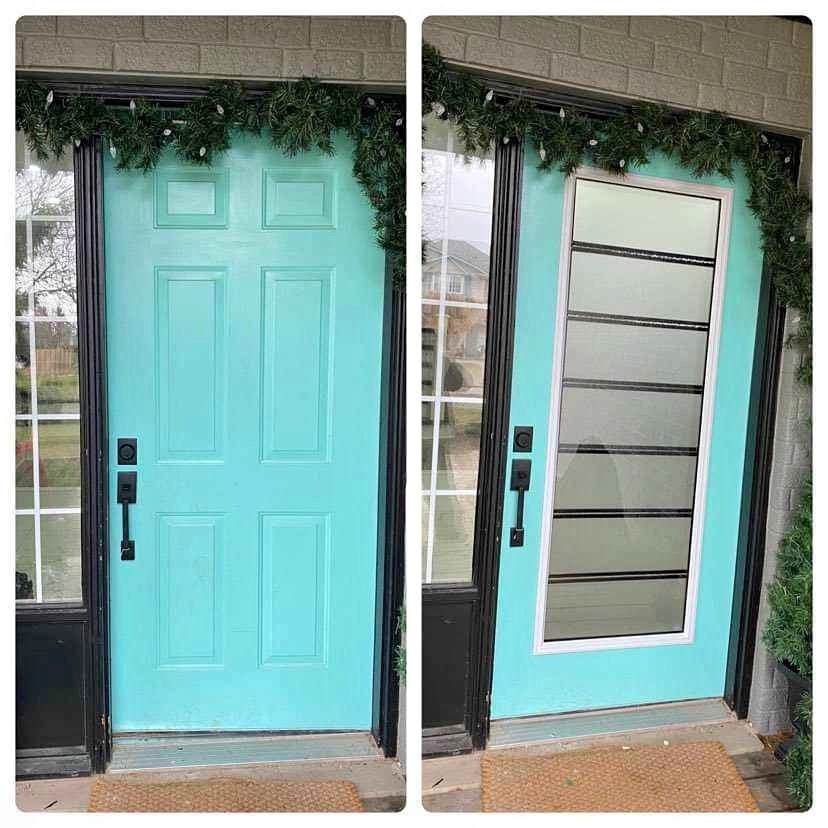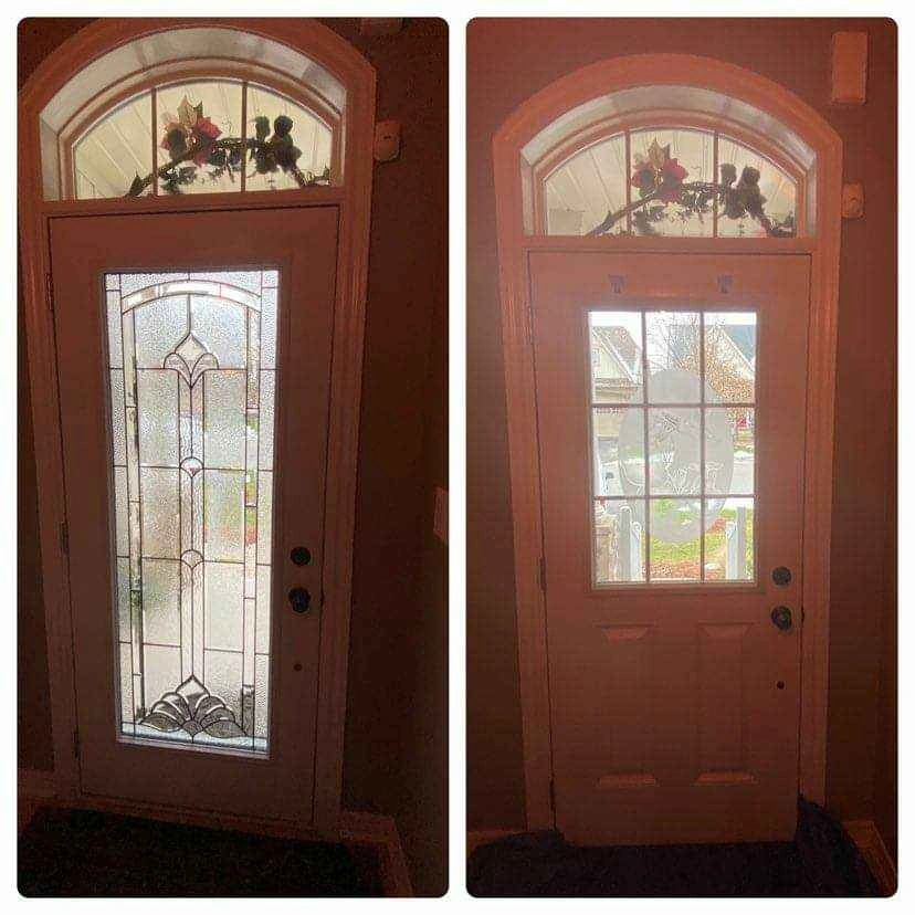 We have glass door inserts available in over 50 designs. We offer single door inserts, double door inserts, half inserts, and 3/4 inserts. Best price guaranteed, includes installation and warranty. Message for more designs and details.