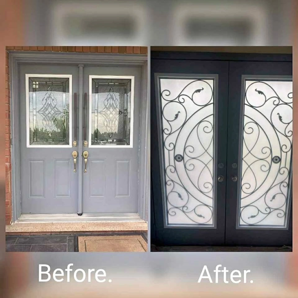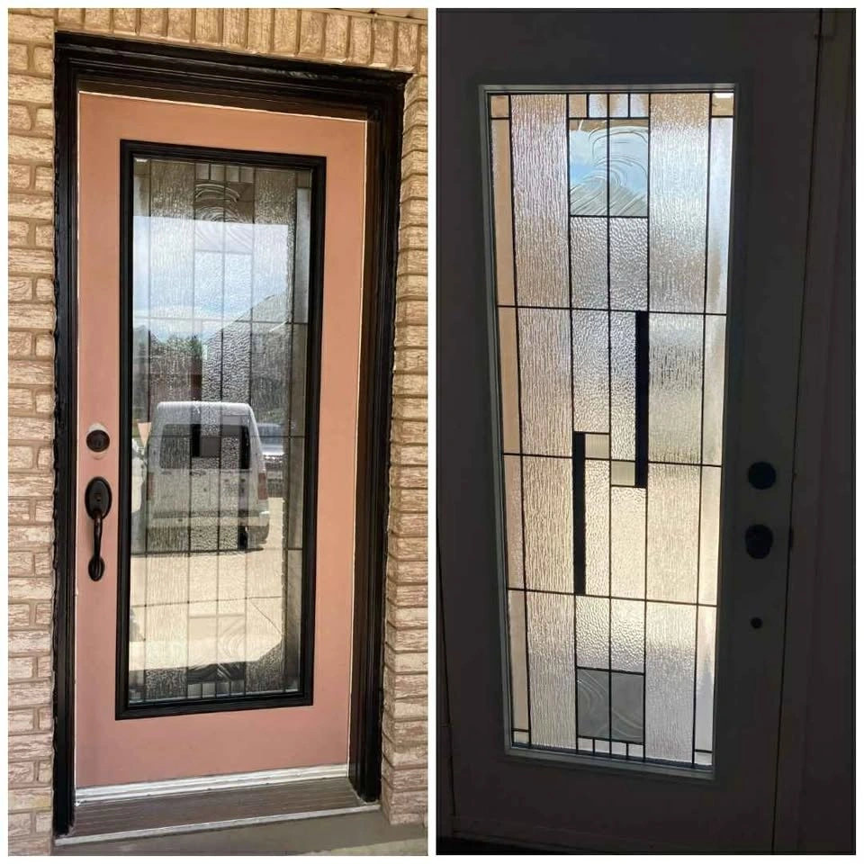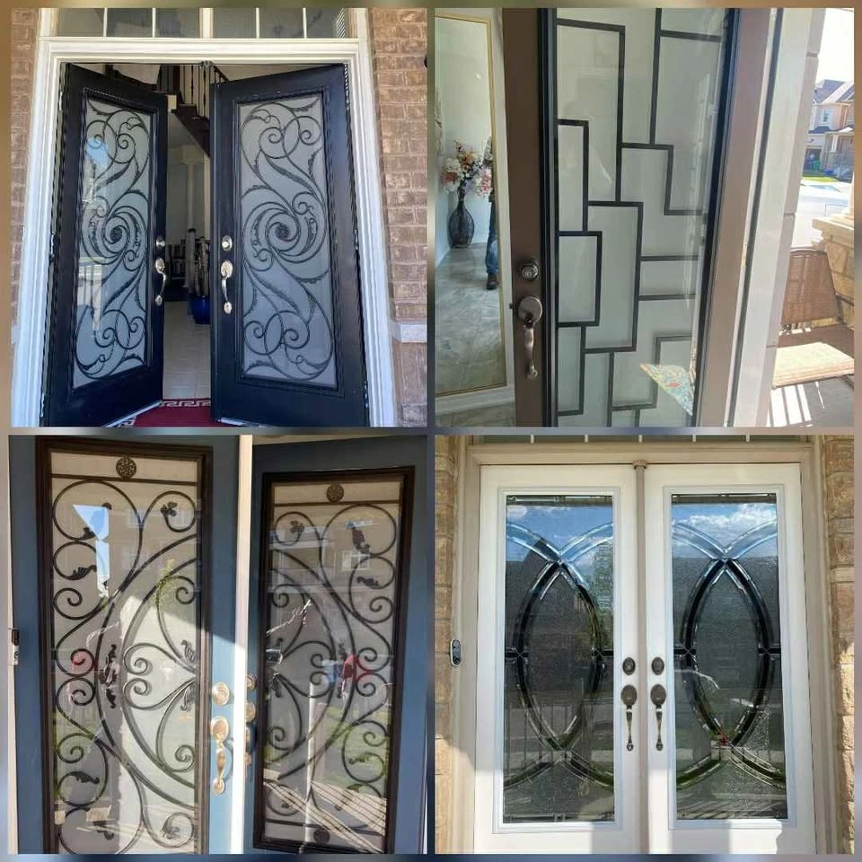 We have glass door inserts available in over 100 designs. Options include single door inserts, double door inserts, half inserts, and 3/4 inserts. Best price guaranteed. Includes installation and warranty. Message for more designs and details.
