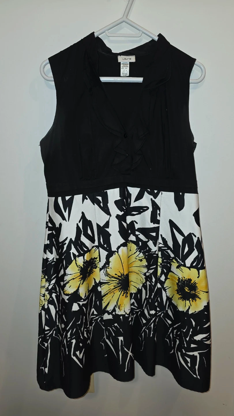 LAURA Chic Black & Yellow Floral Sleeveless Dress