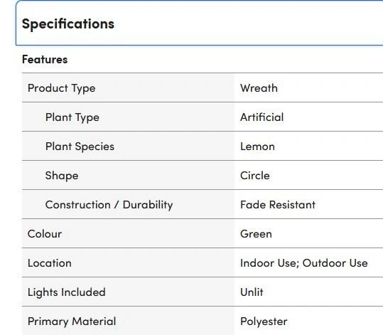 Artificial Lemon Wreath. (indoor/outdoor use)
