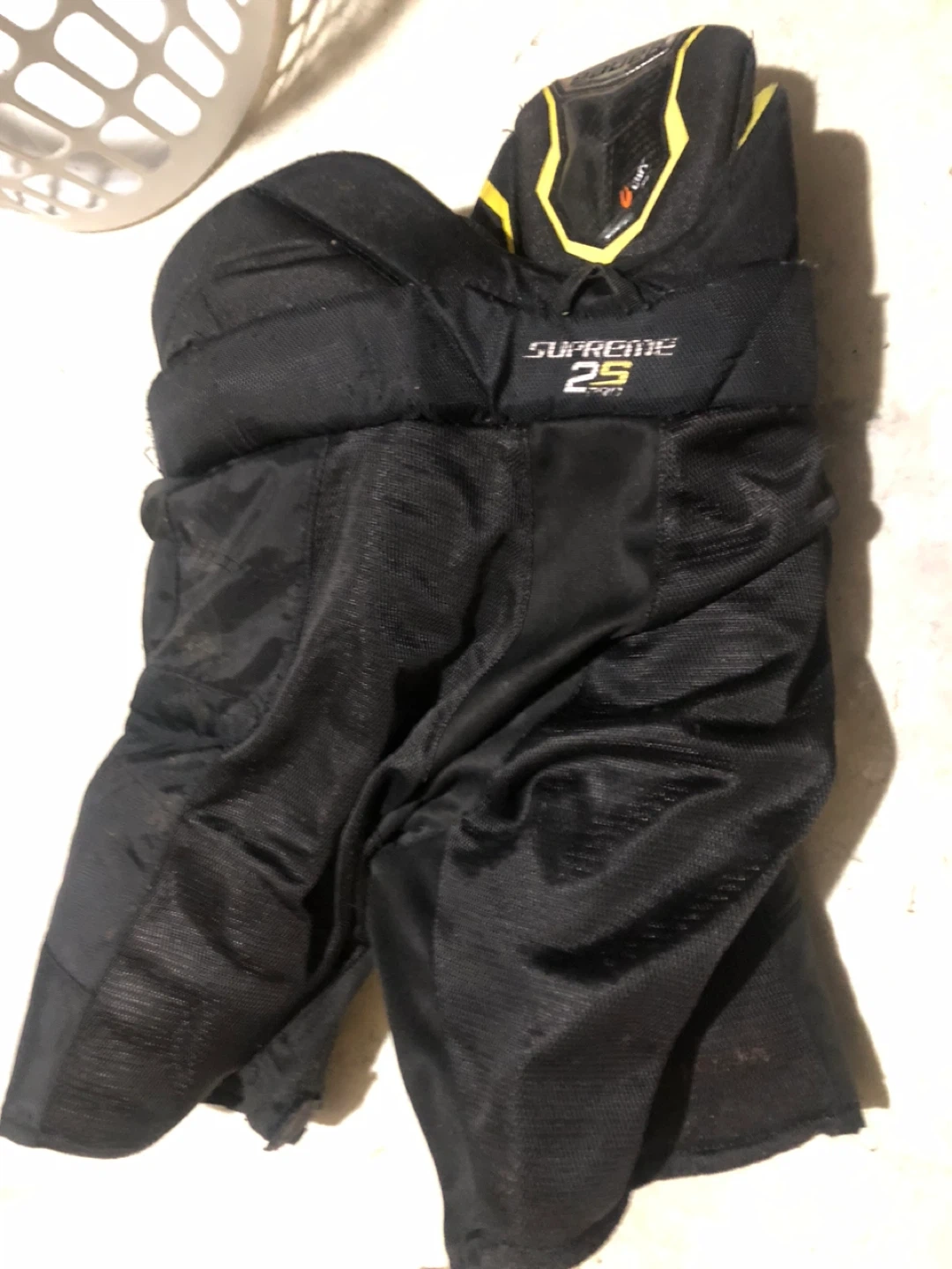 These Bauer Supreme 2S Pro hockey pants are black. They're designed for protection and performance on the ice. They're a great choice for players looking for quality gear