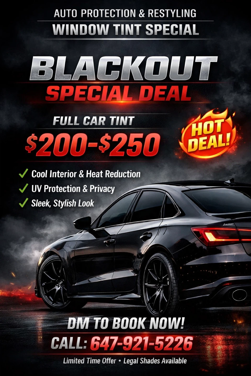 Full Car Window Tint Special - Blackout Deal