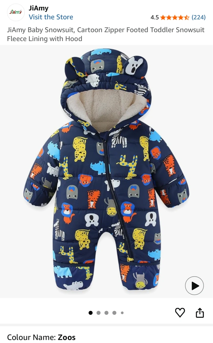 JiAmy Baby Snowsuit Zoo Cartoon Fleece Lined Hooded