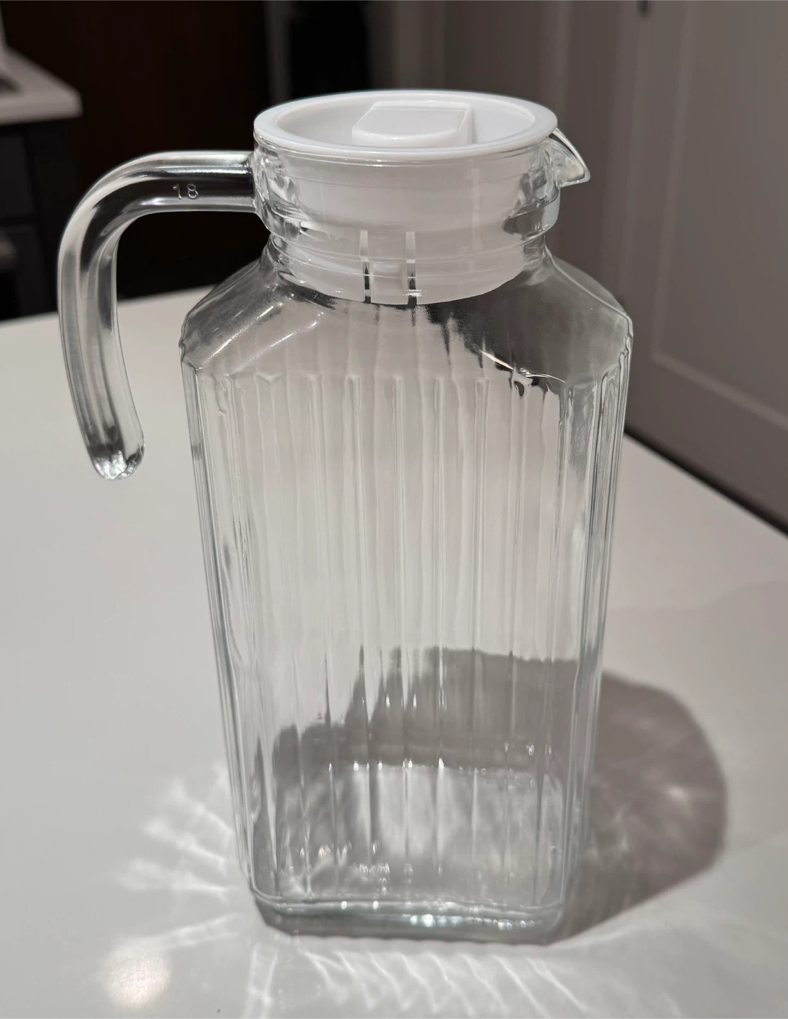 Clear Glass Pitcher with White Lid