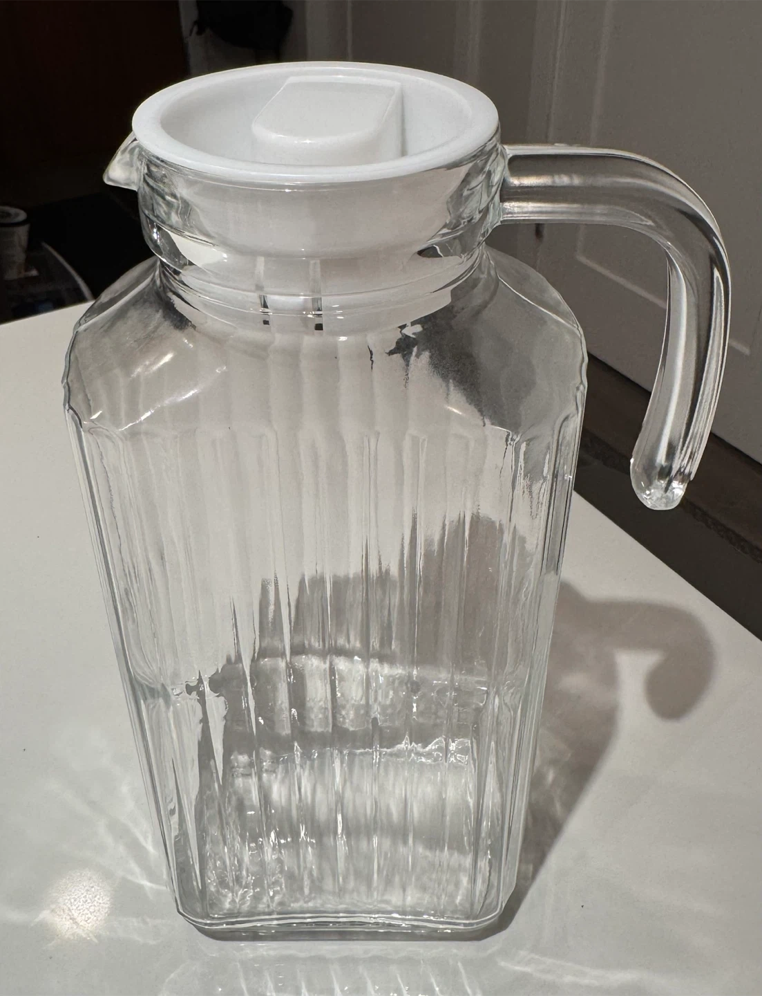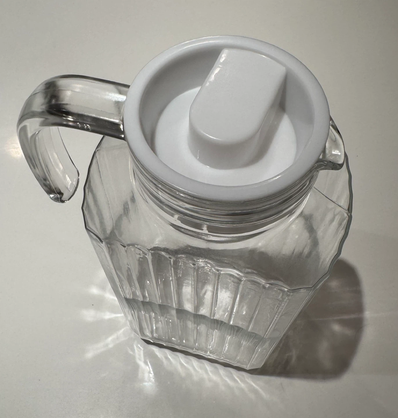 Clear Glass Pitcher with White Lid