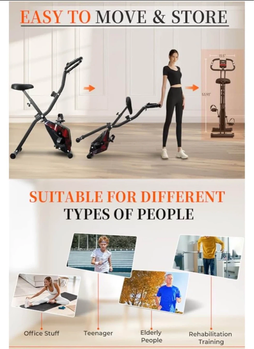 Exercise Bike, 5-in-1 Foldable Stationary Bikes with 16-Level Magnetic Resistance, Folding Exercise Bicycles with 10DB Near-Silent Indoor Bike with 350LB Capacity, Comfortable Seat Backrest.