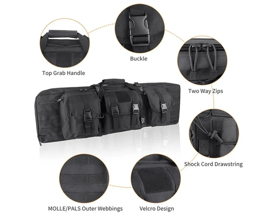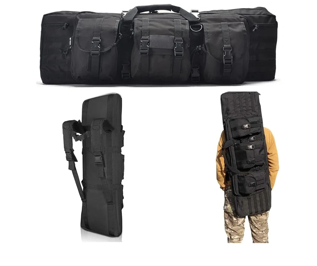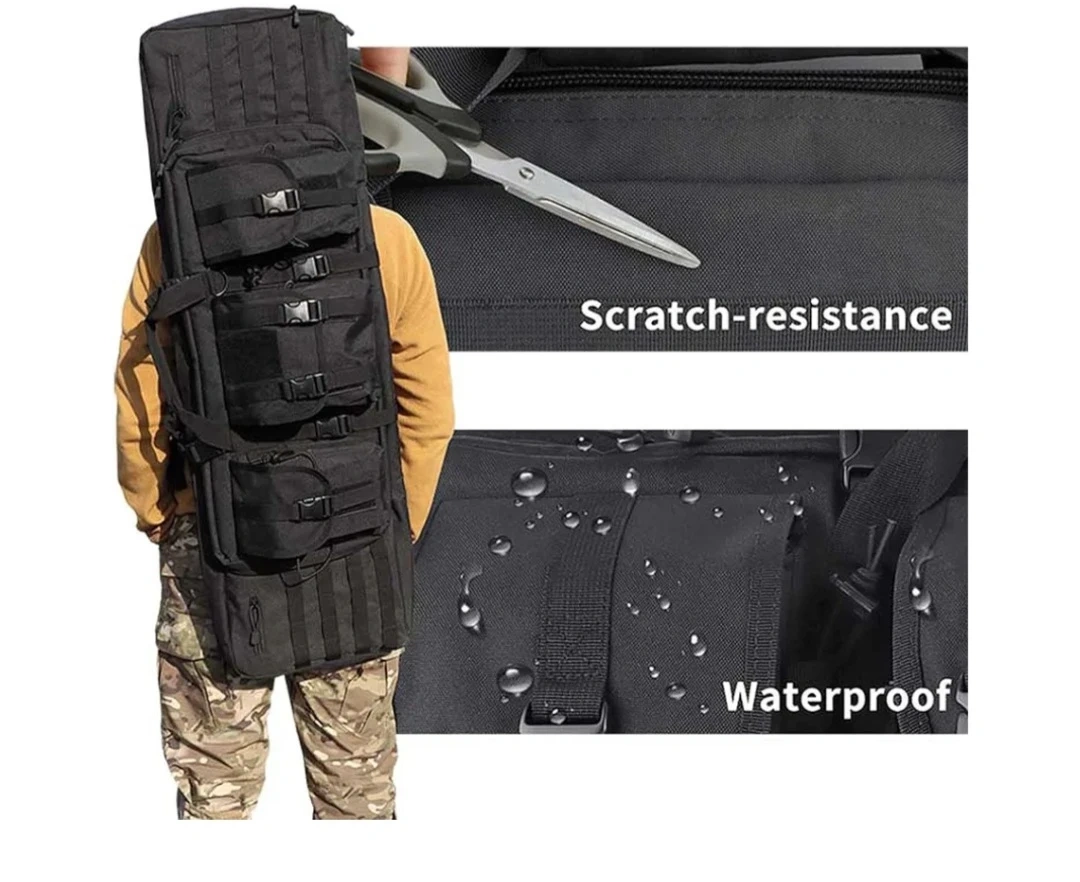This black rifle case offers plenty of storage and protection. It's waterproof and scratch-resistant, great for safely transporting your firearm. Multiple compartments help keep your gear organized.