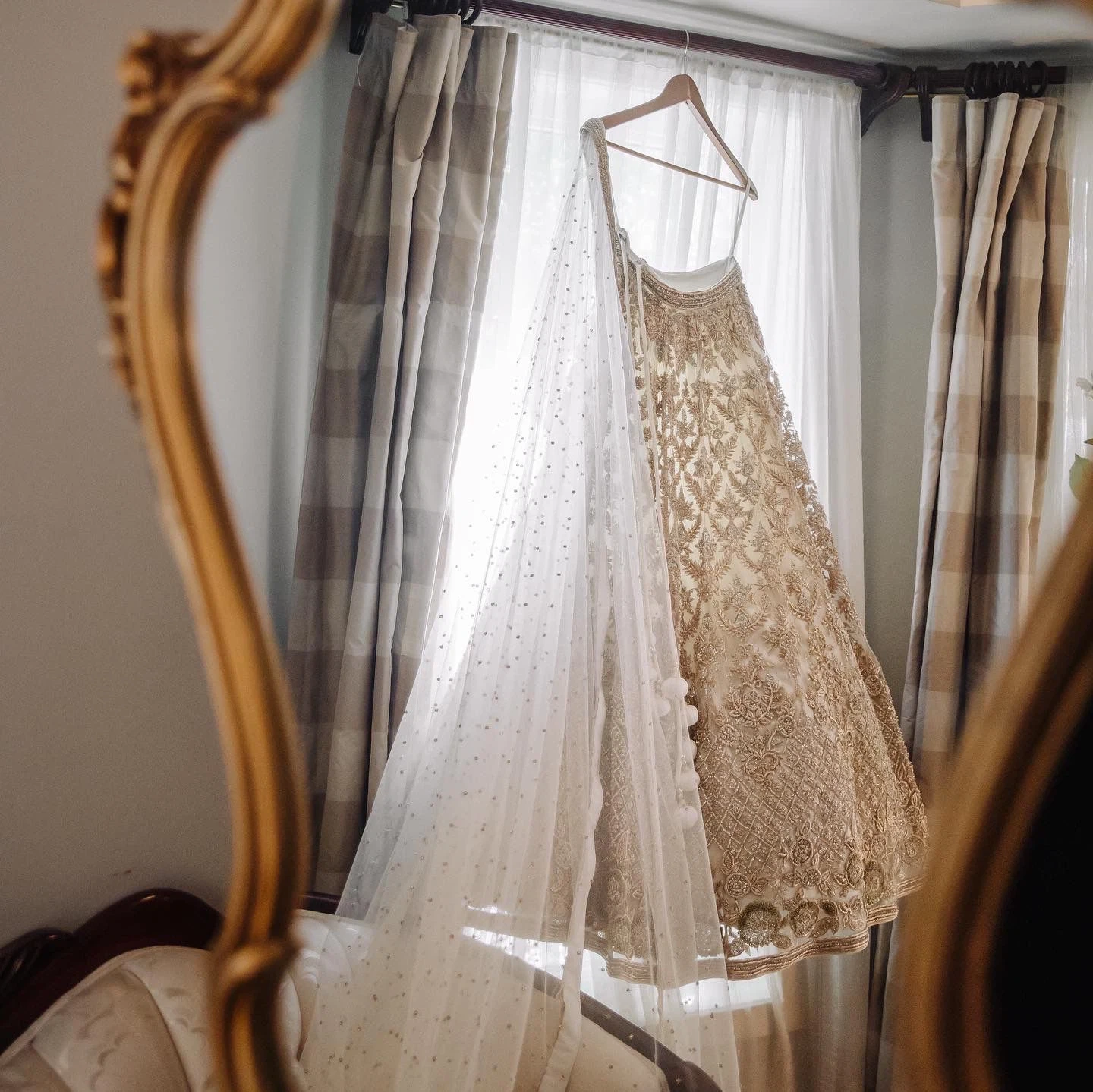 Custom Indian Couture Bridal Lengha with Long Veil - Kora Work